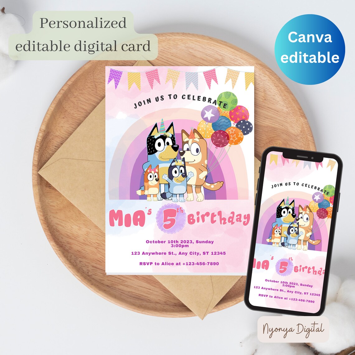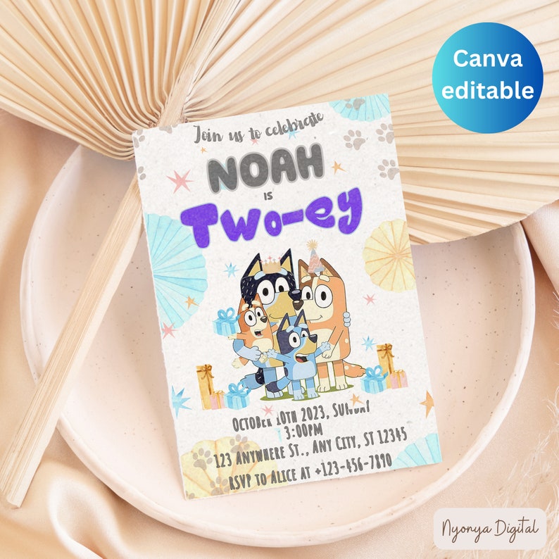 Bluey editable birthday invitation canva template bluey kids invite