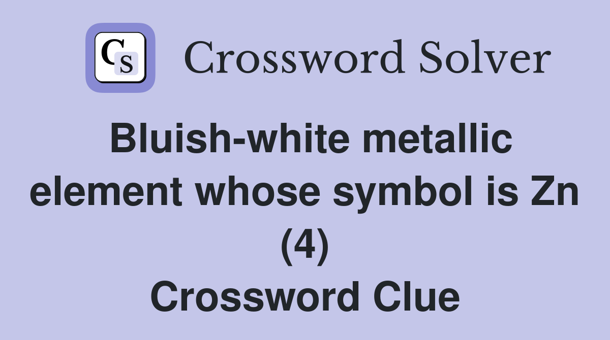 Bluish white metallic element whose symbol is Zn (4) Crossword Clue
