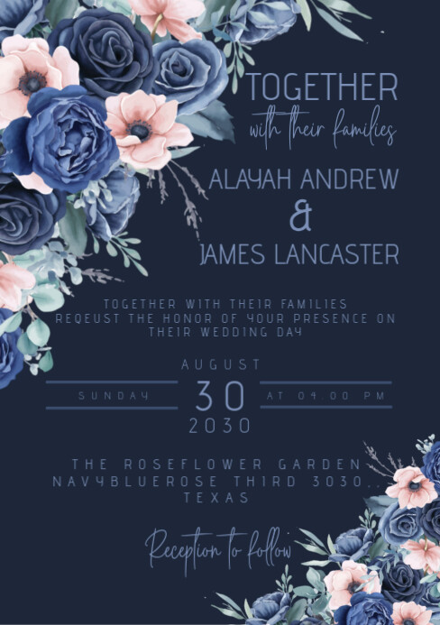 Navy Blue And Blush Pink Wedding Invitation Template Invite 50% OFF