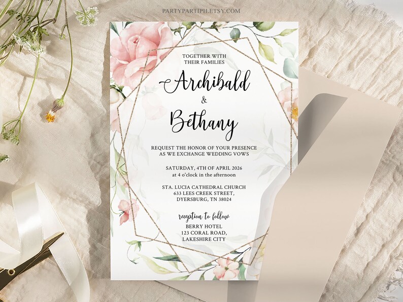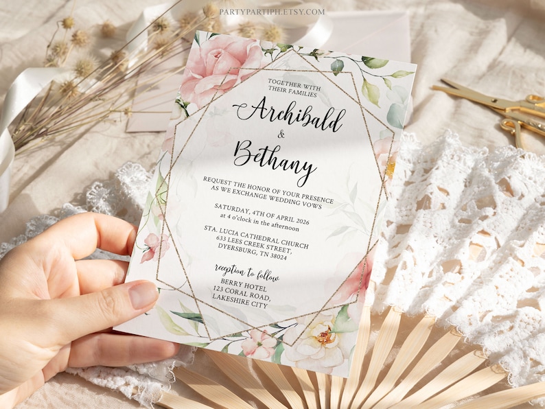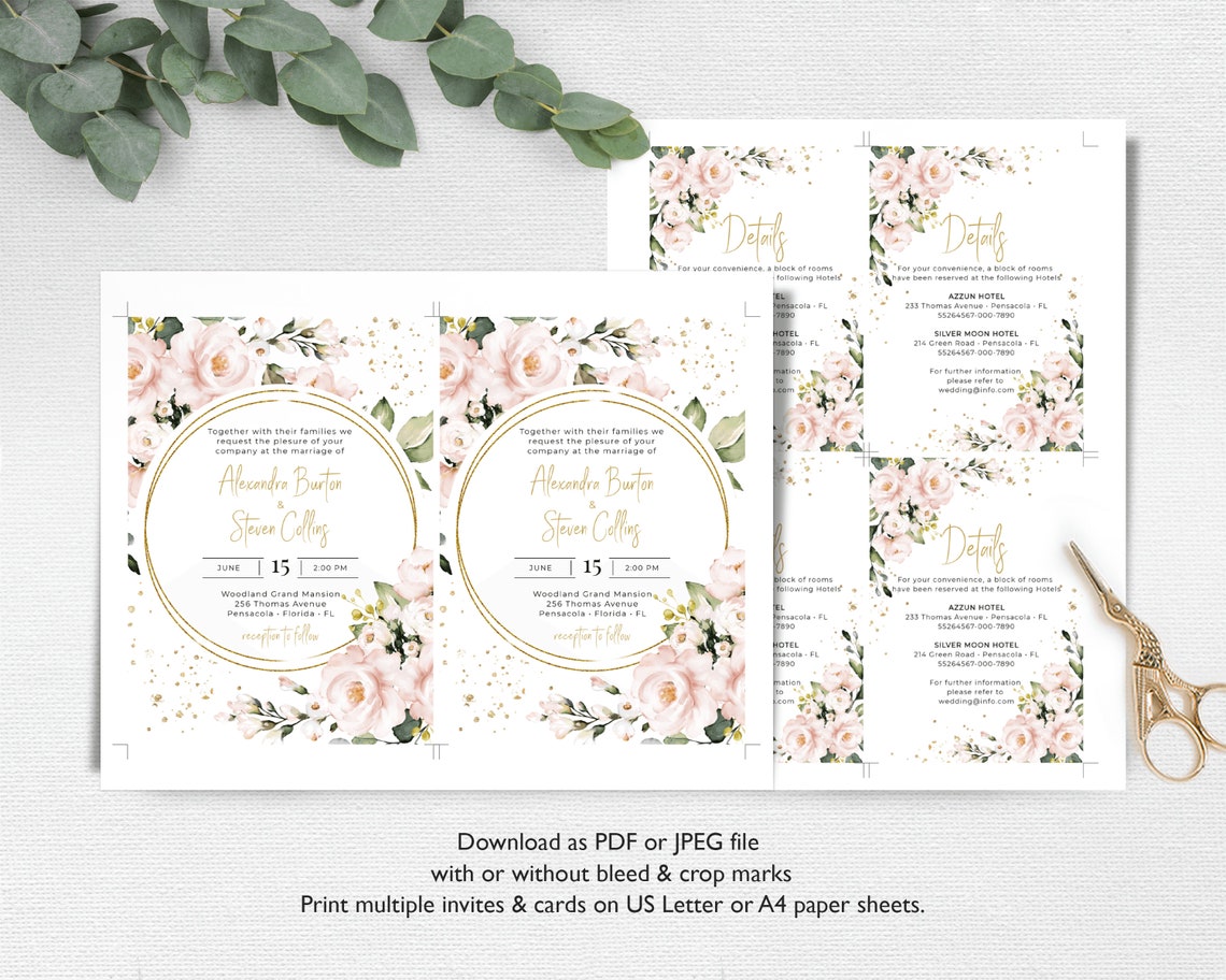 Blush Pink Floral Wedding Invitation Template (66018) Card Making