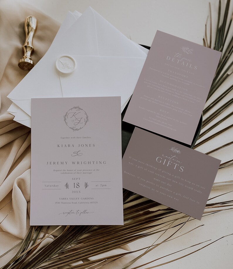 Blush Pink Wedding Invitation Template Dusty Rose Wedding Invitation