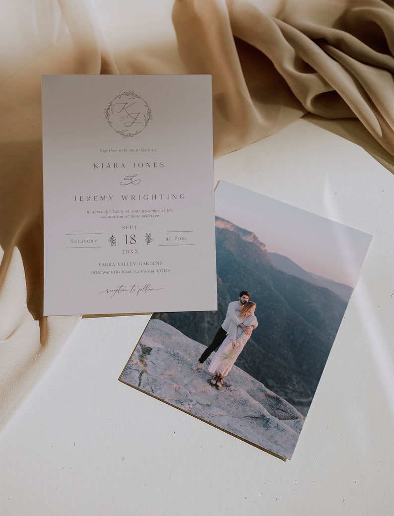 Blush Pink Wedding Invitation Template Monogram Wedding Etsy