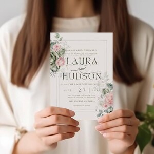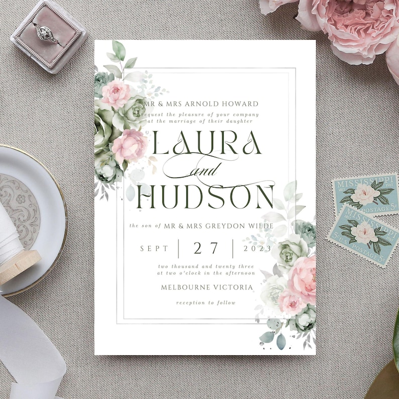 Sage Green and Blush Pink Wedding Invitation Etsy