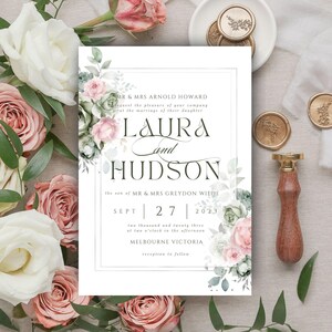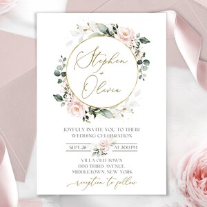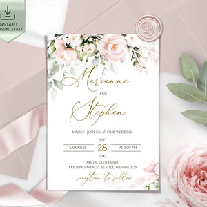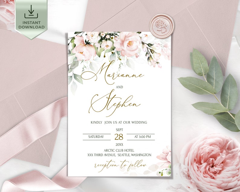 Blush Pink Wedding Invitation Template Editable Floral Invite Pink