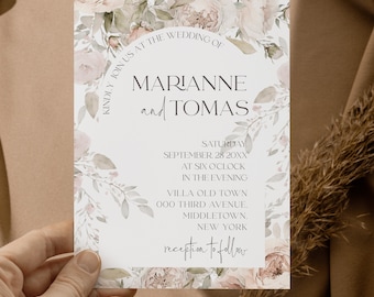 Blush Pink Wedding Invitation Template Printable Boho Blooming Wedding