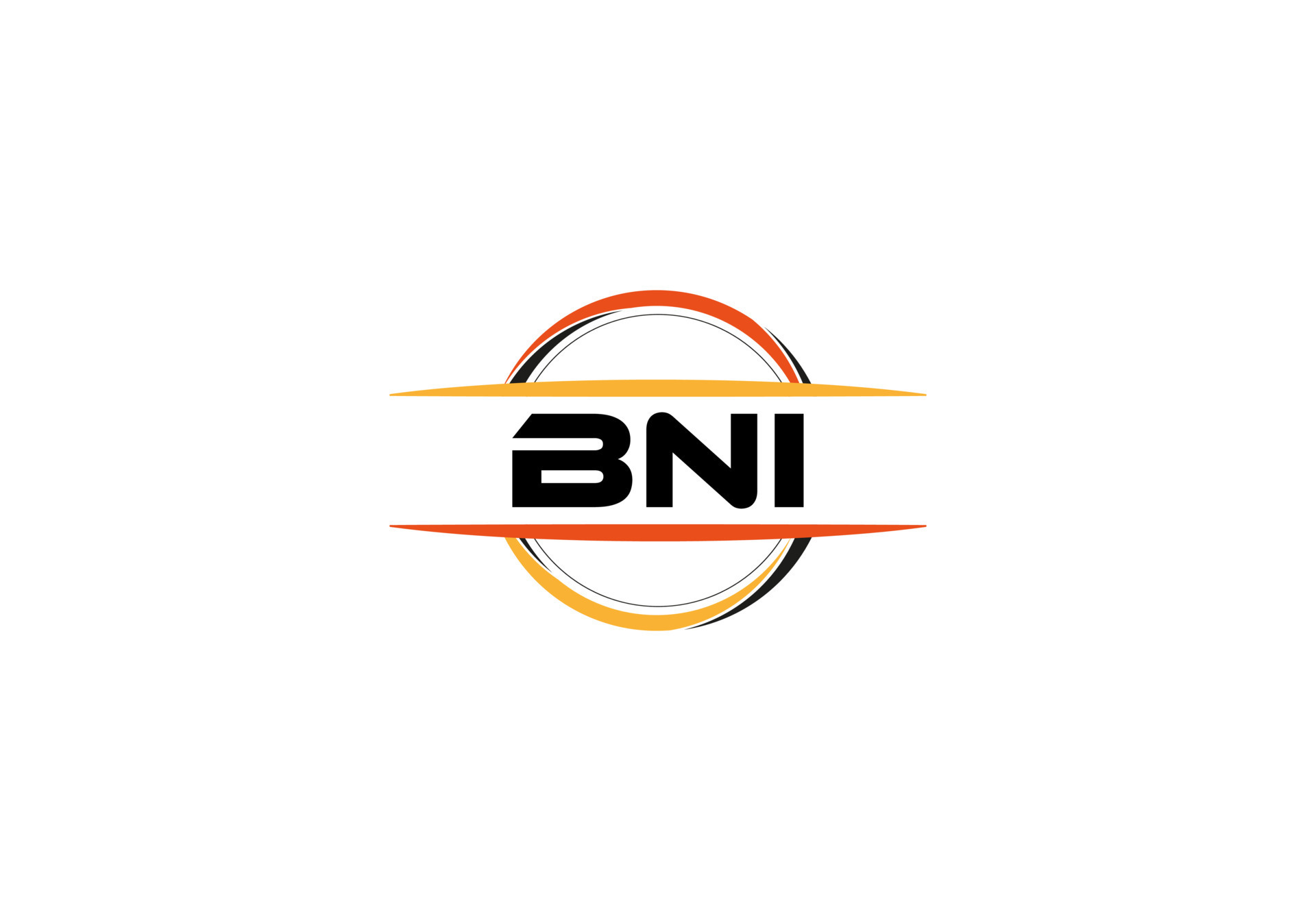 BNI letter royalty ellipse shape logo BNI brush art logo BNI logo for
