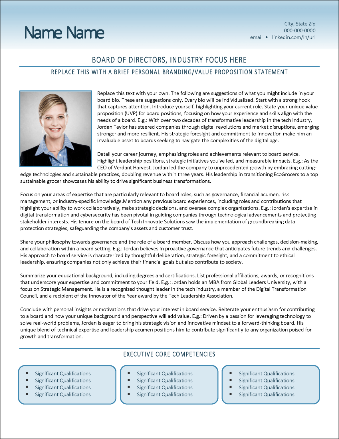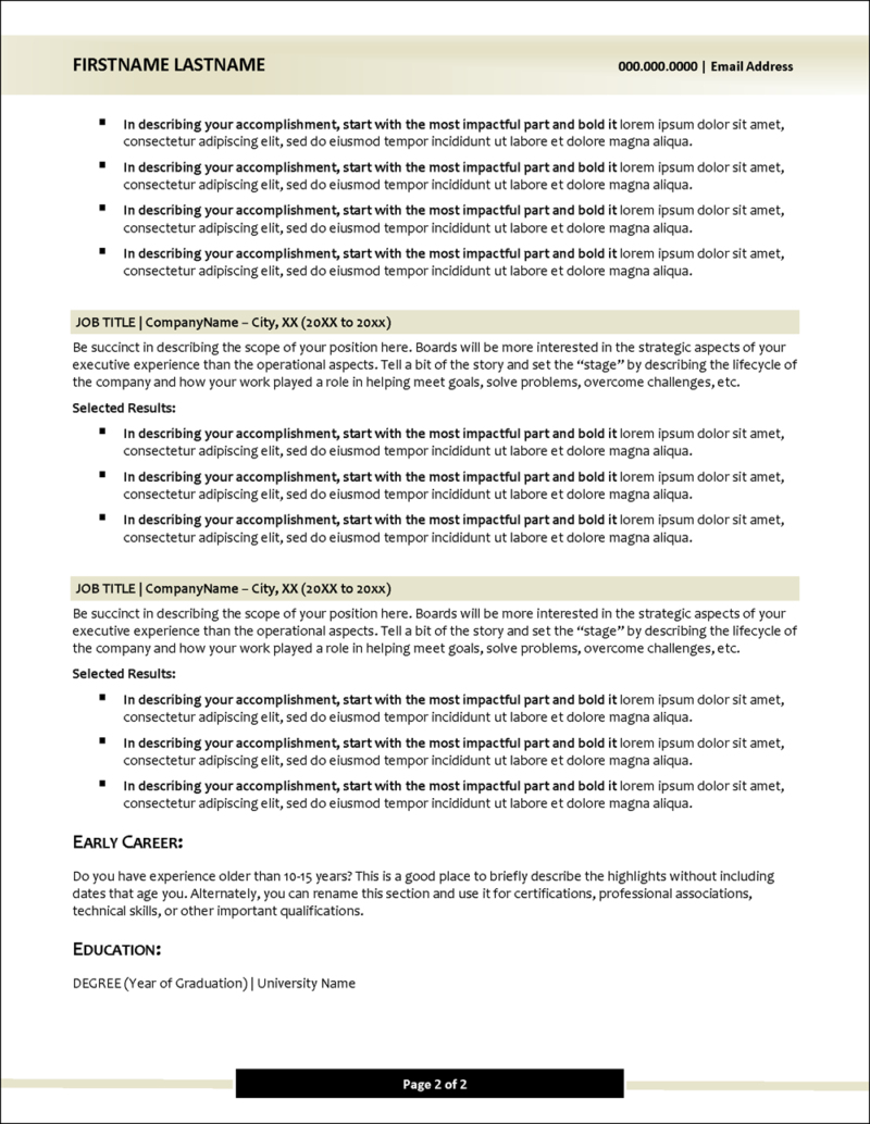 Executive Templates Set for Board Candidates Distinctive Templates