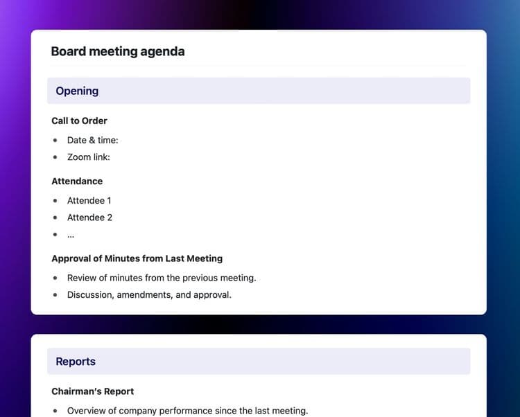 Board Meeting Agenda: Template and How to Set Up Board room org