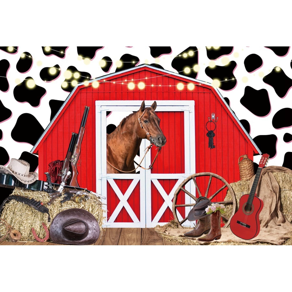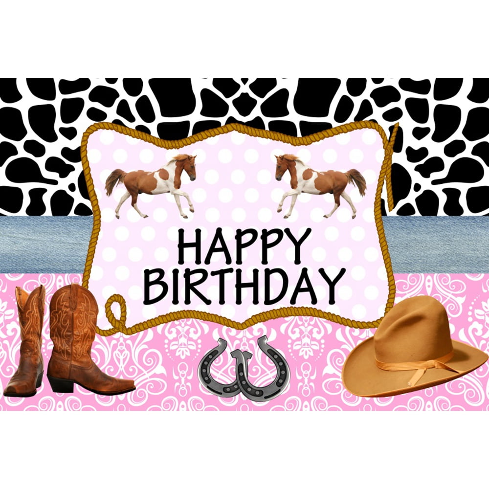 Cowboy Happy Birthday Backdrop Vintage Wooden Board Horse Guitar Hat