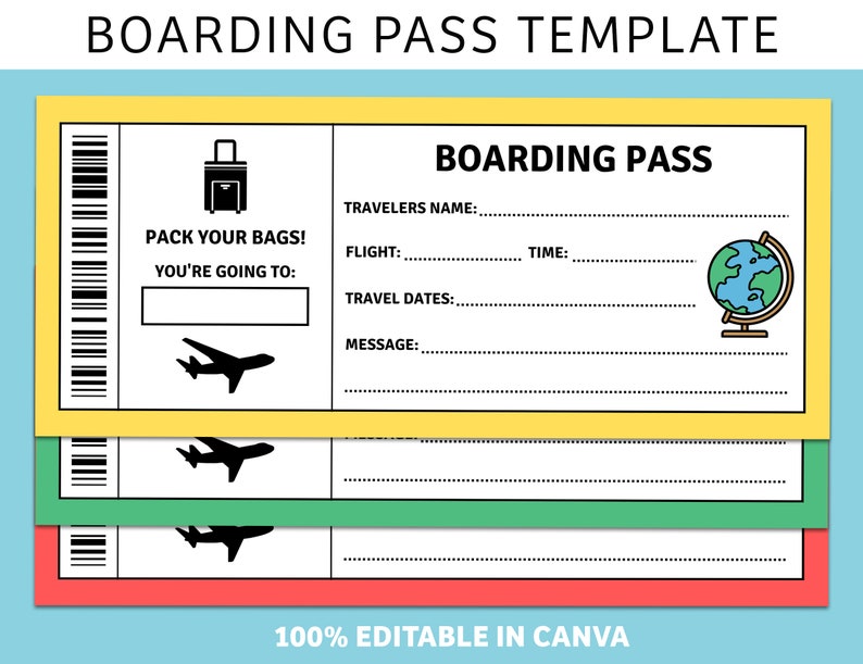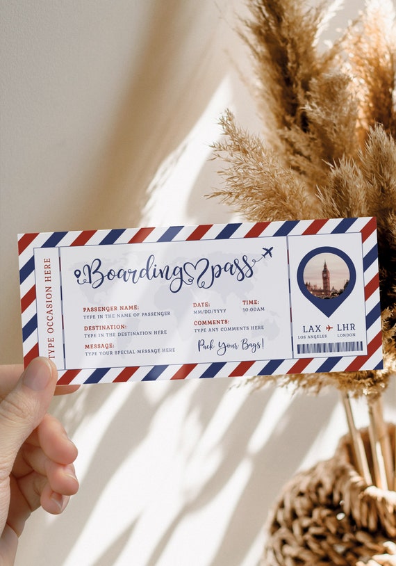 Editable Boarding Pass Ticket Template Surprise Airline Gift Etsy Canada