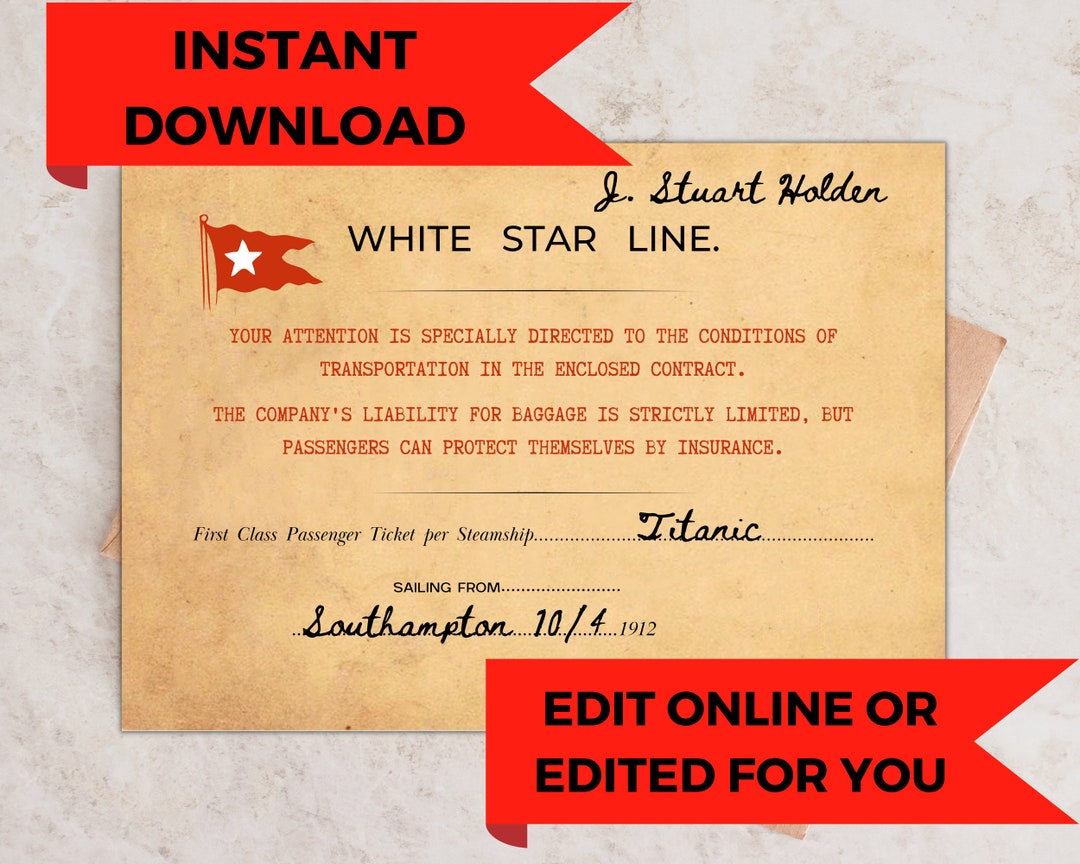 Titanic Boarding Pass Printable Template Editable Wedding Invitation
