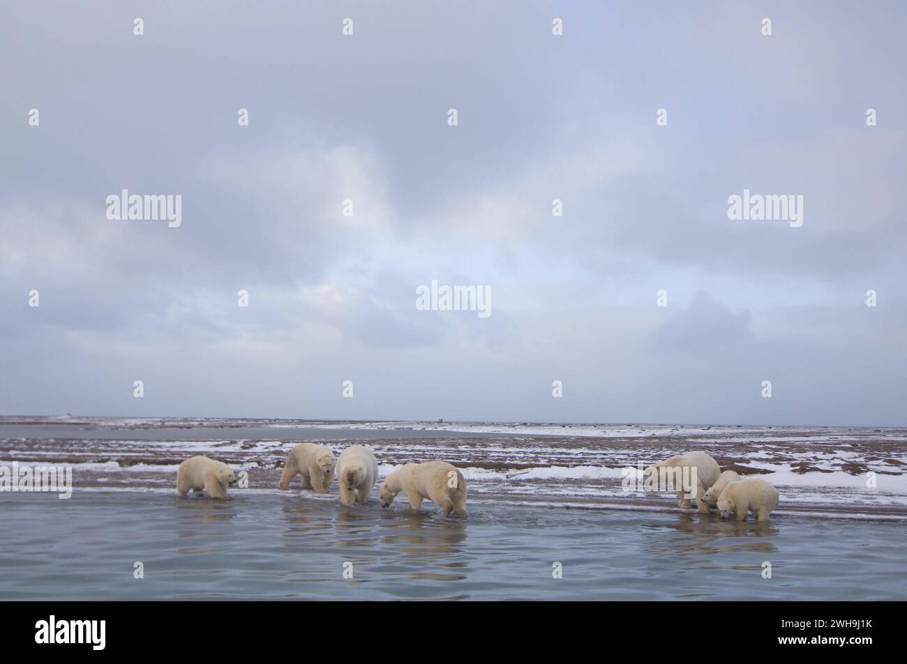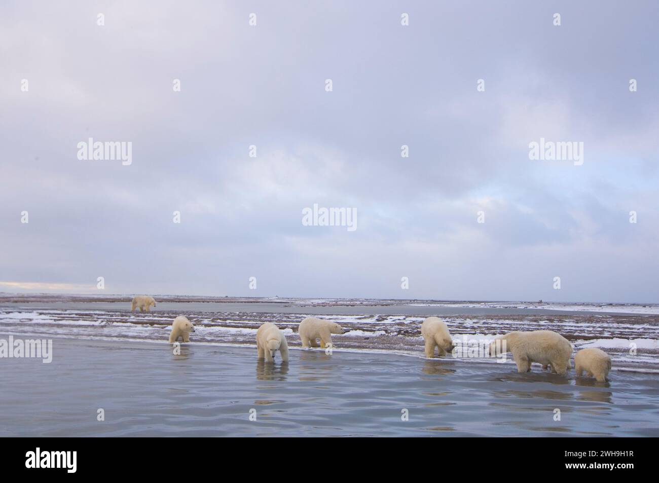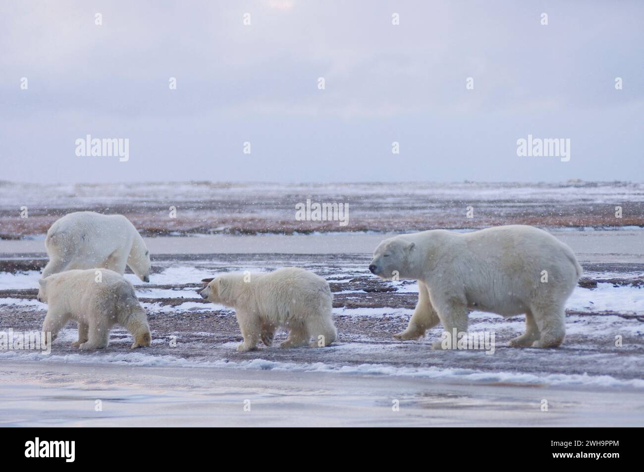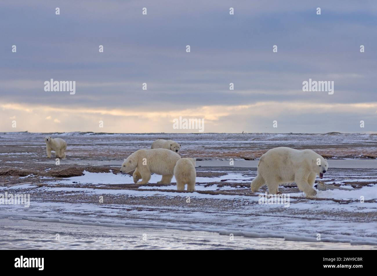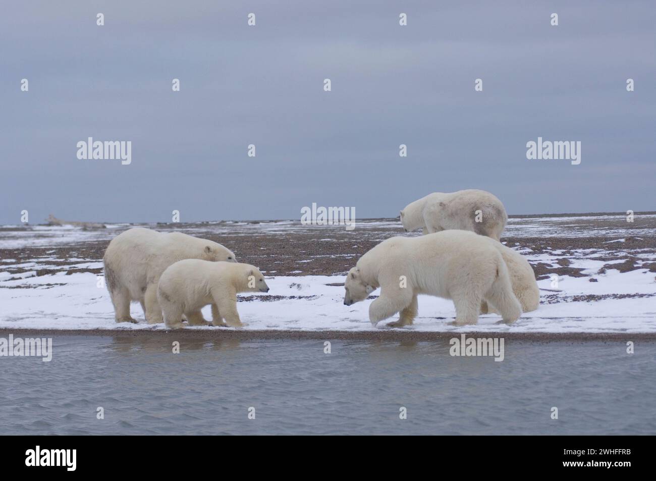 polar bears Ursus maritimus sows cubs boars along a barrier island