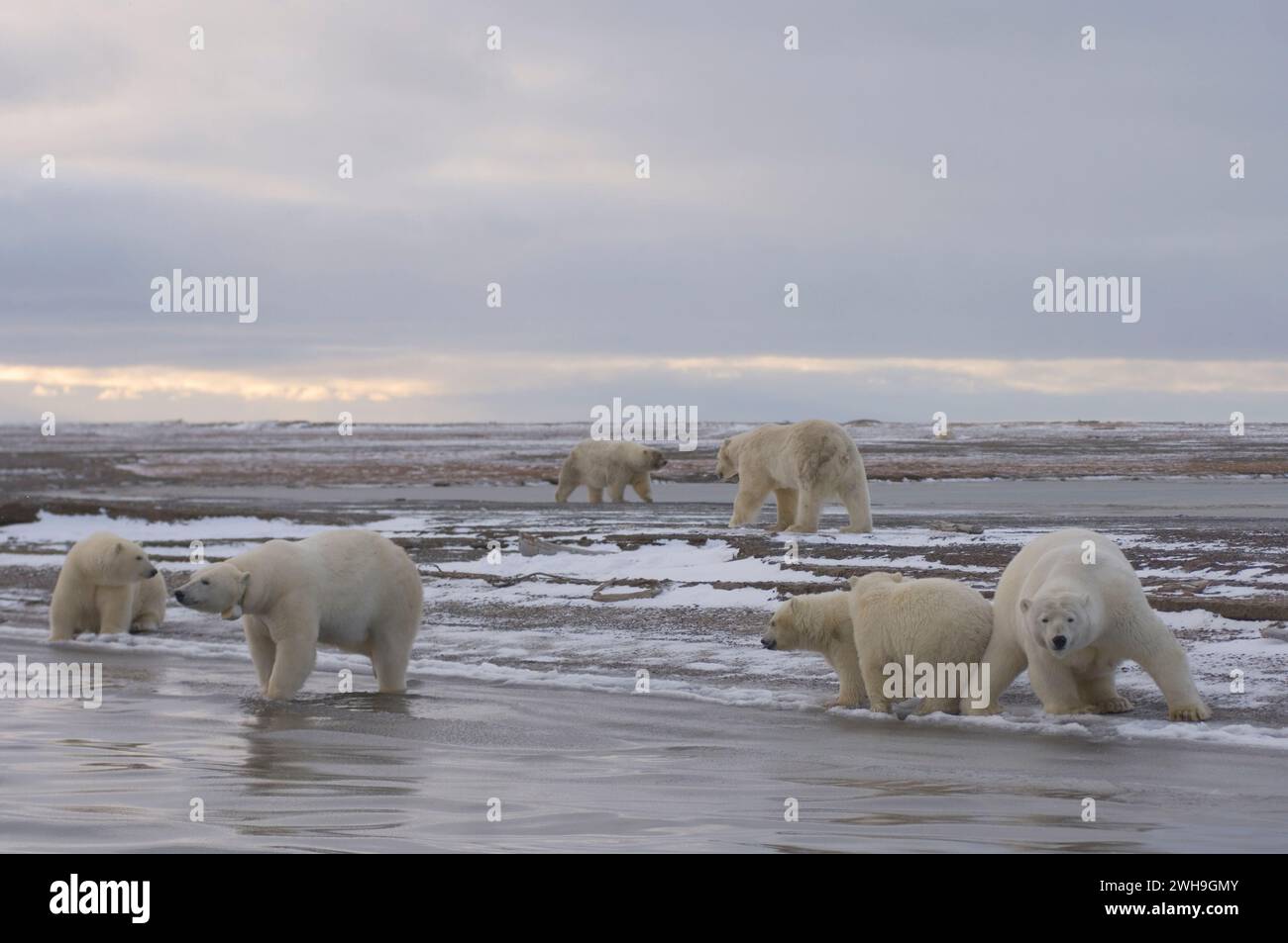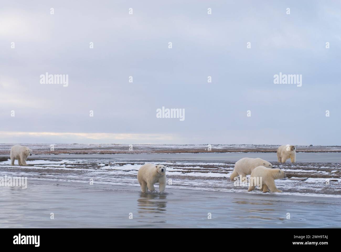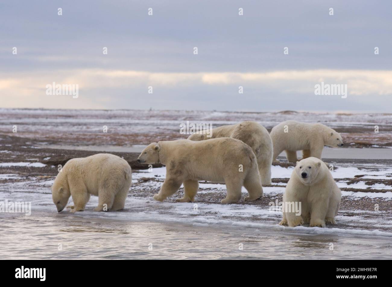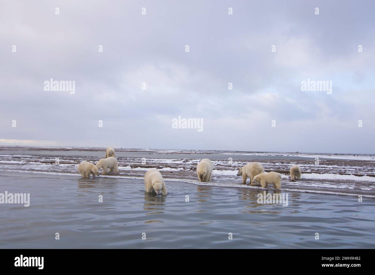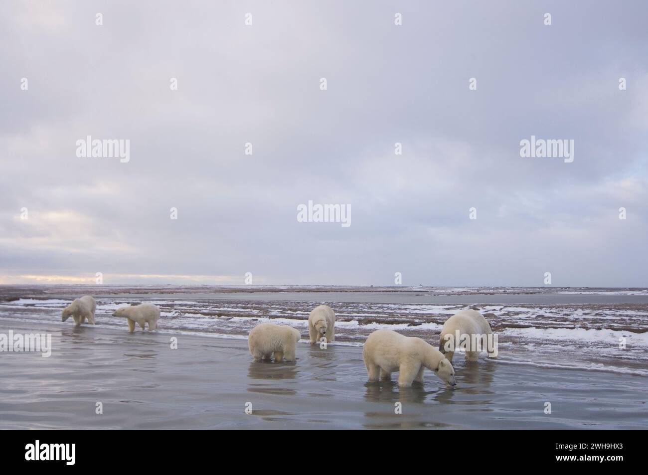 polar bears Ursus maritimus sows cubs boars along a barrier island