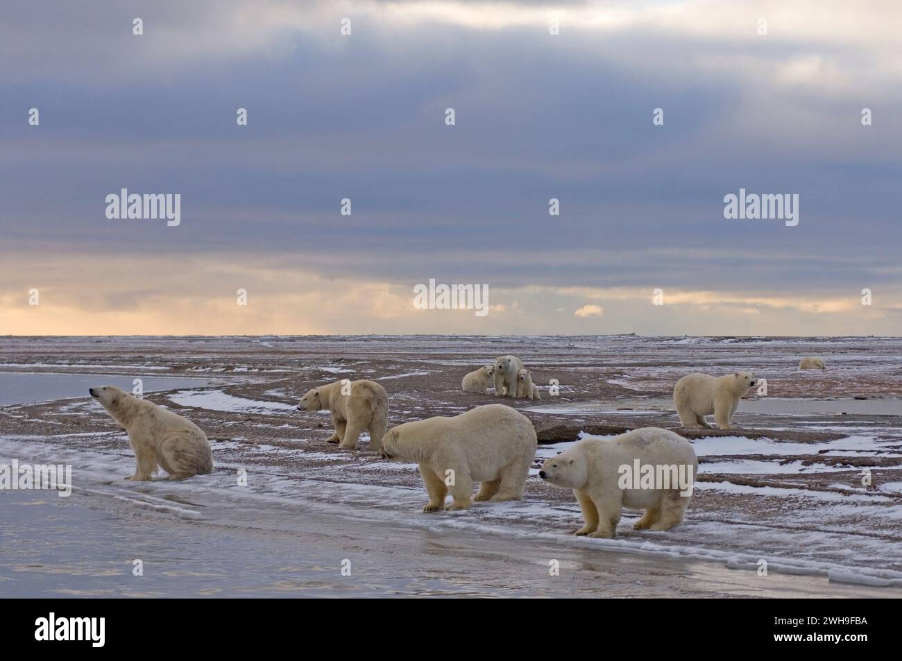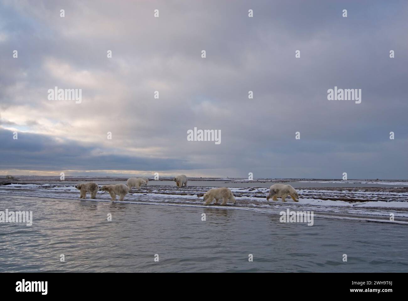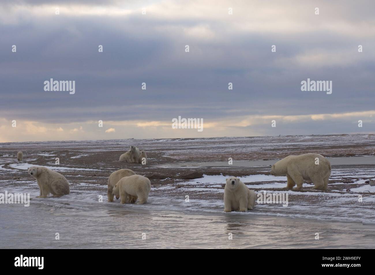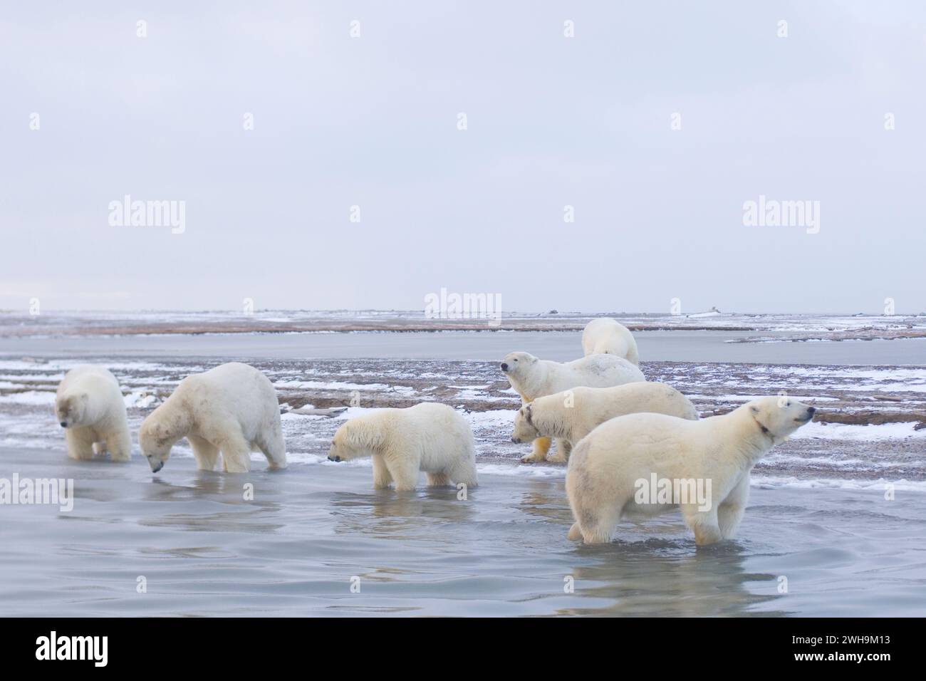 polar bears Ursus maritimus sows cubs boars along a barrier island