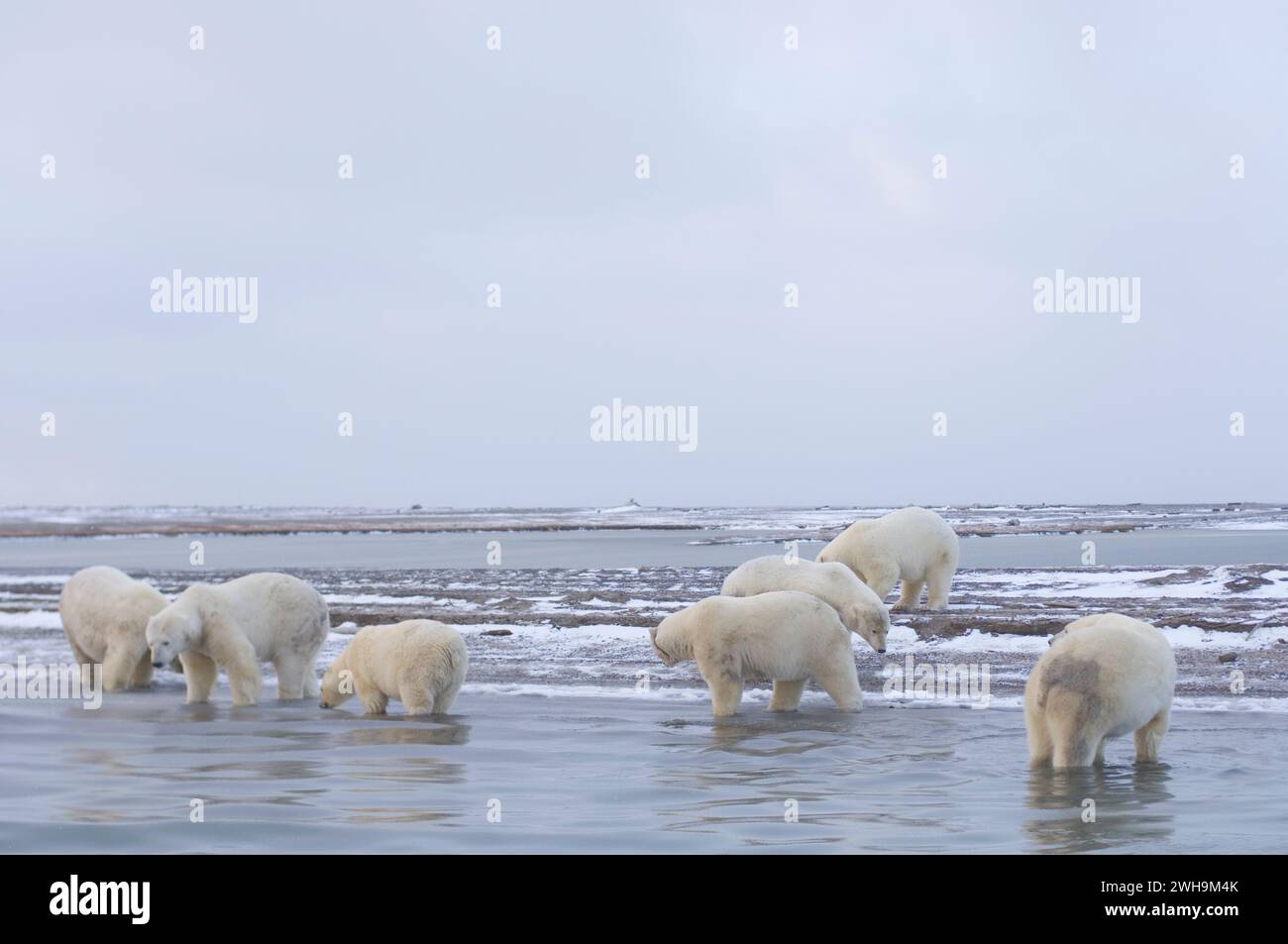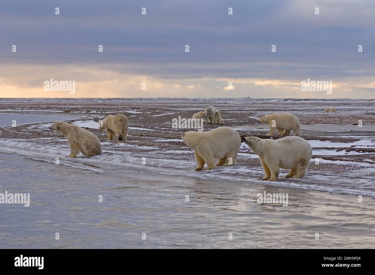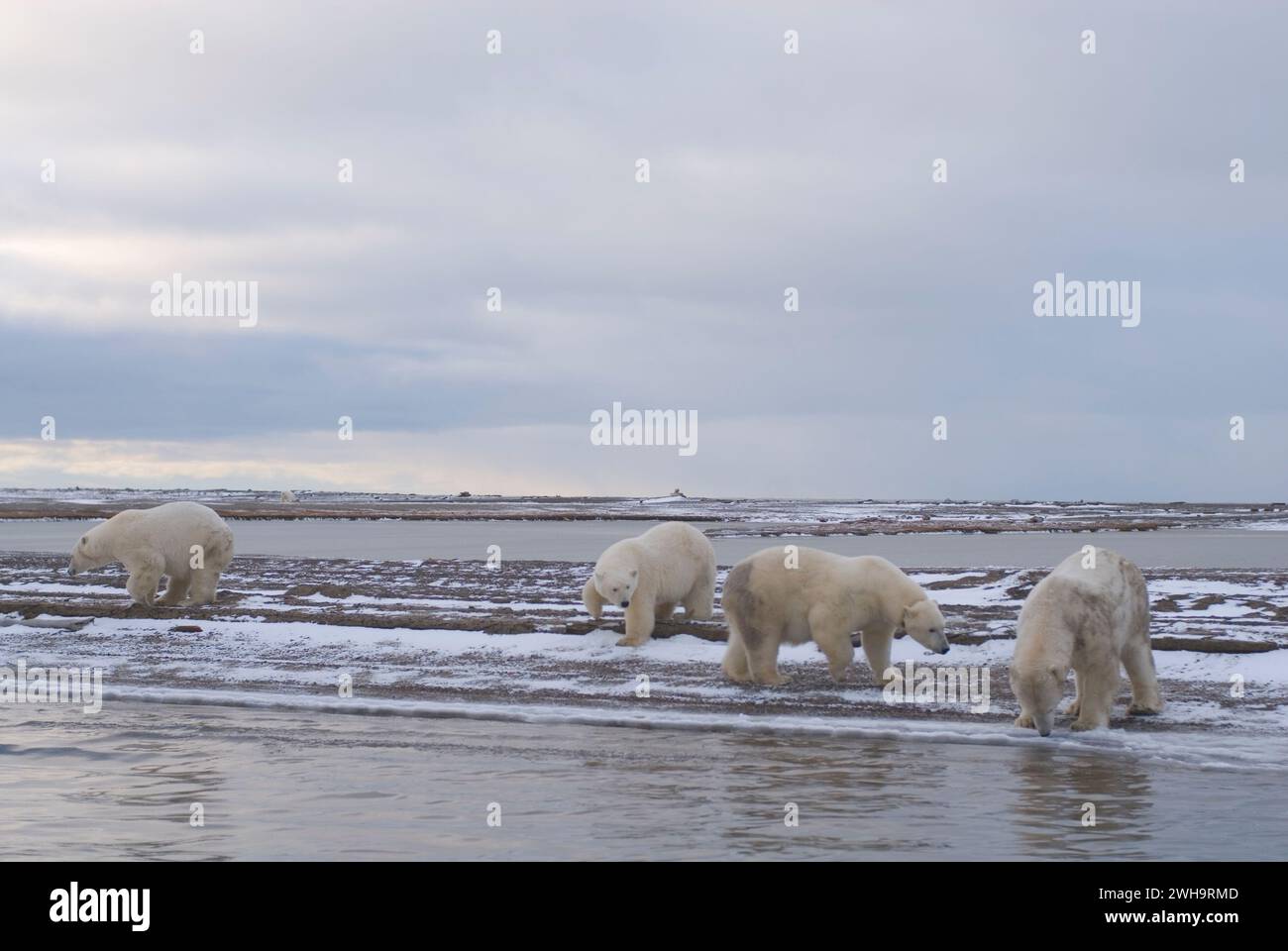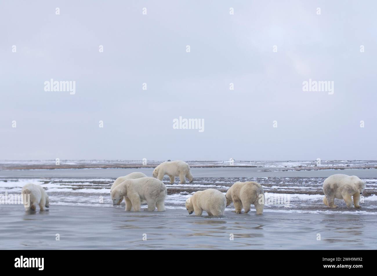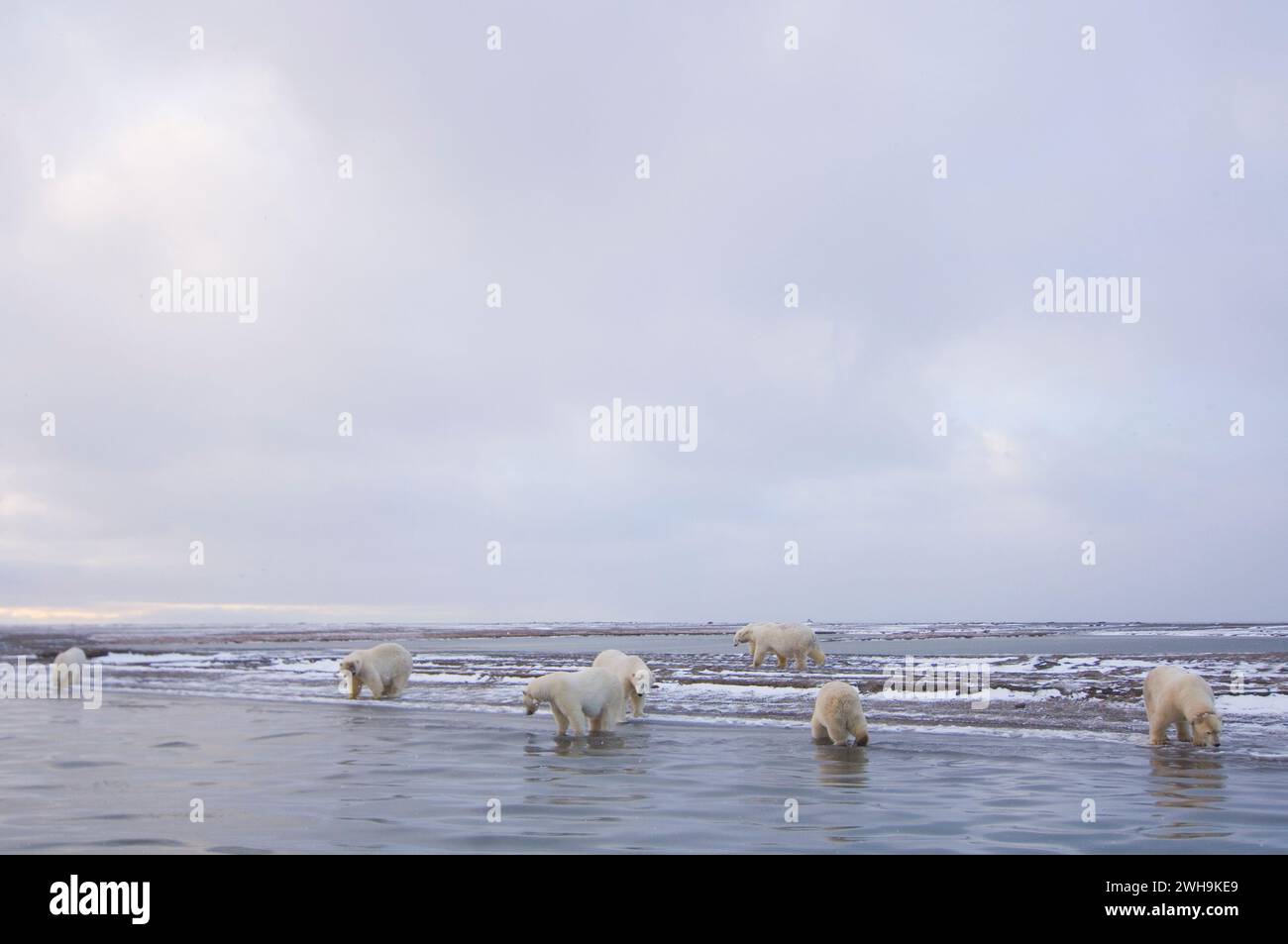polar bears Ursus maritimus sows cubs boars along a barrier island