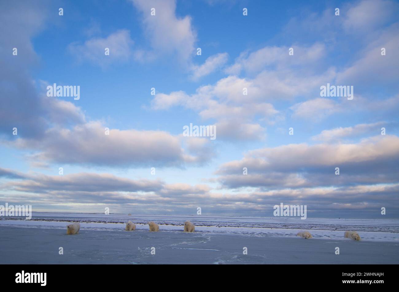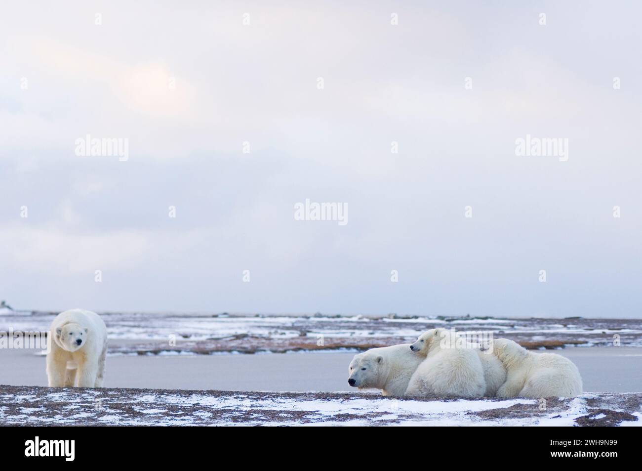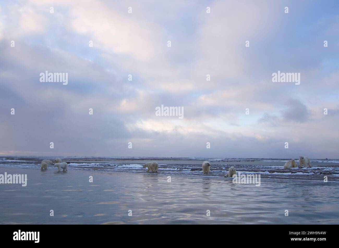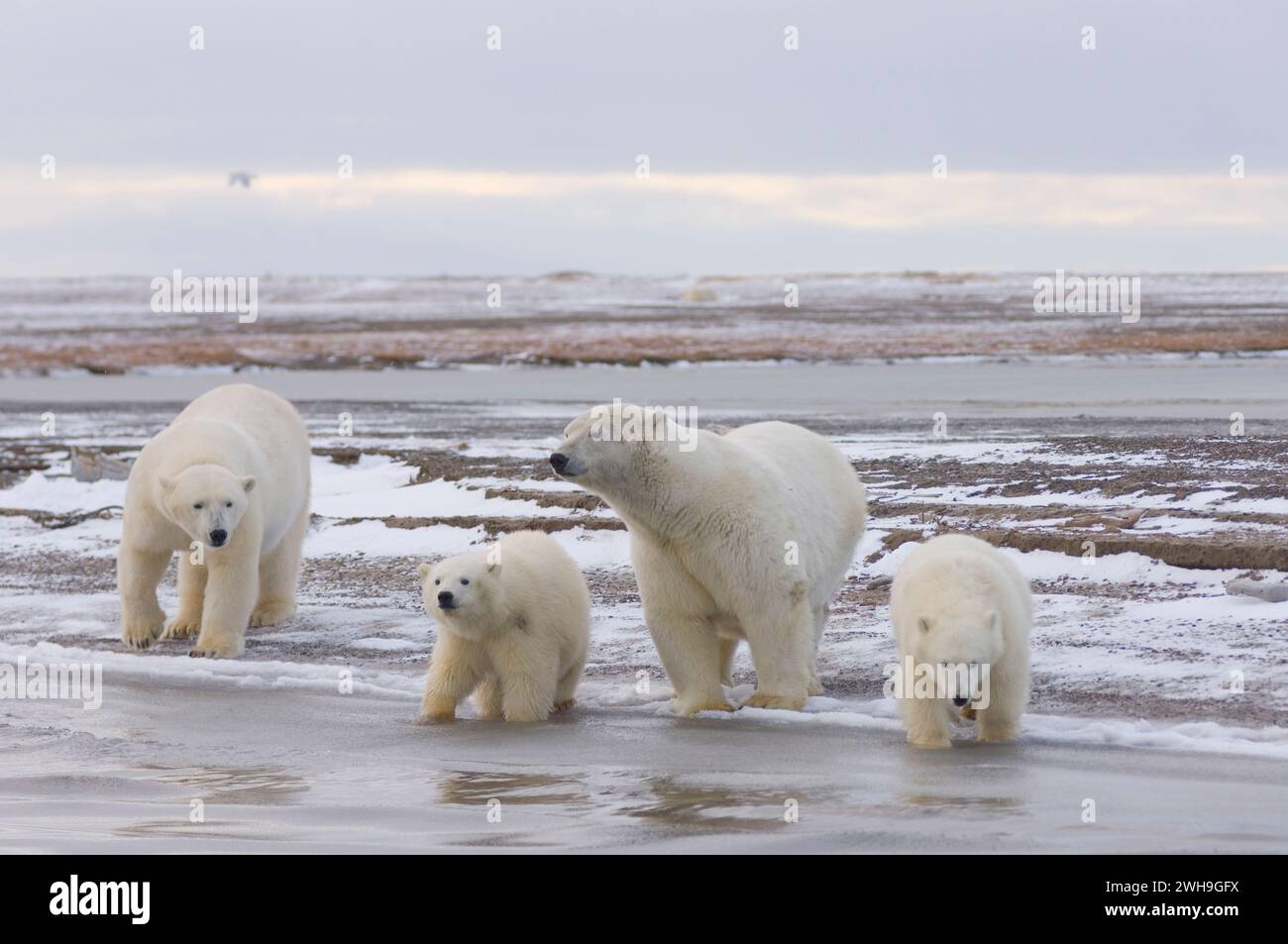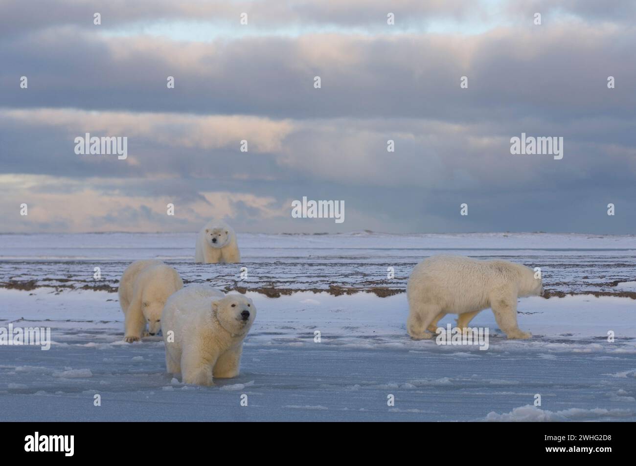polar bears Ursus maritimus sows cubs boars along a barrier island