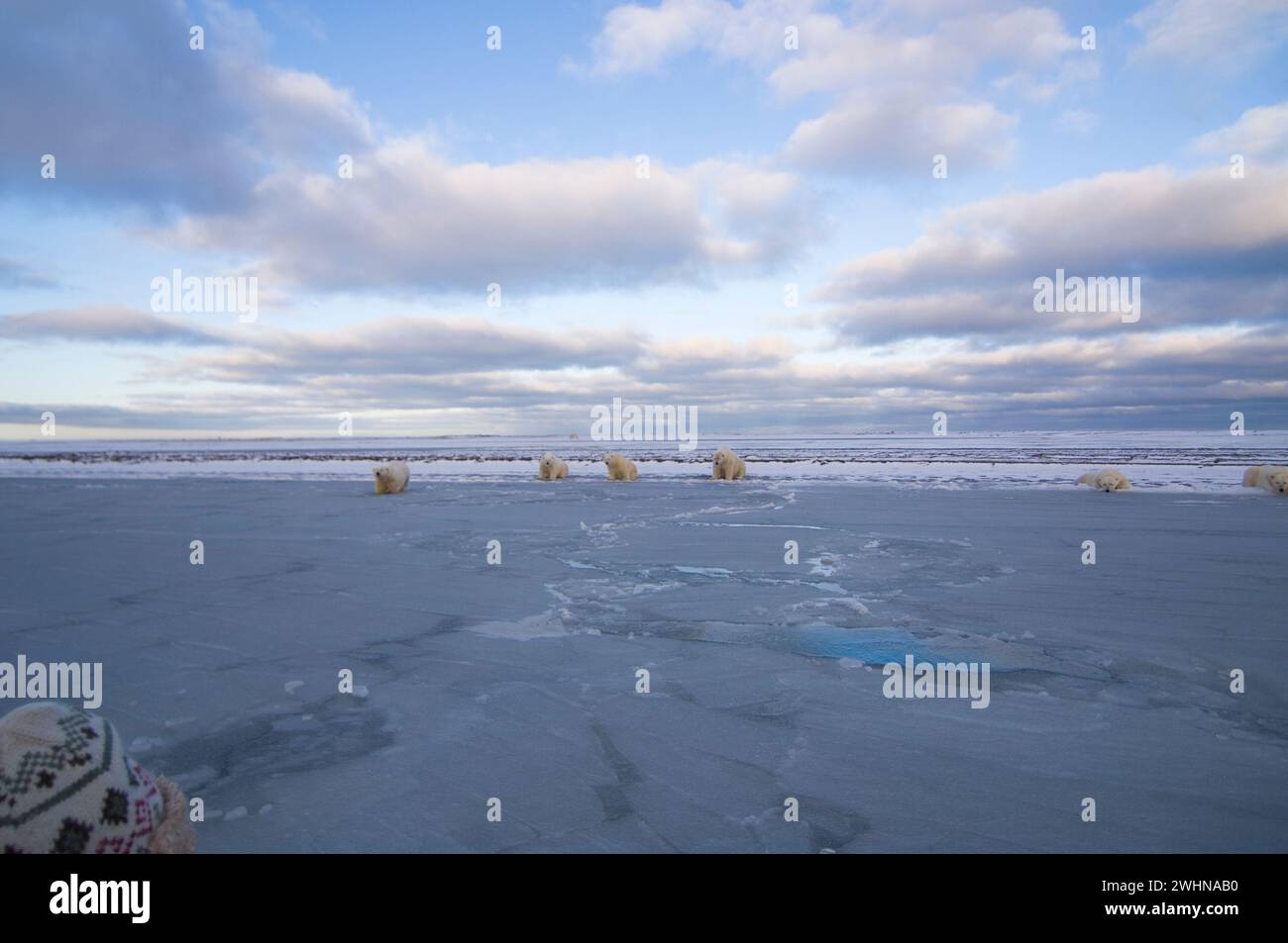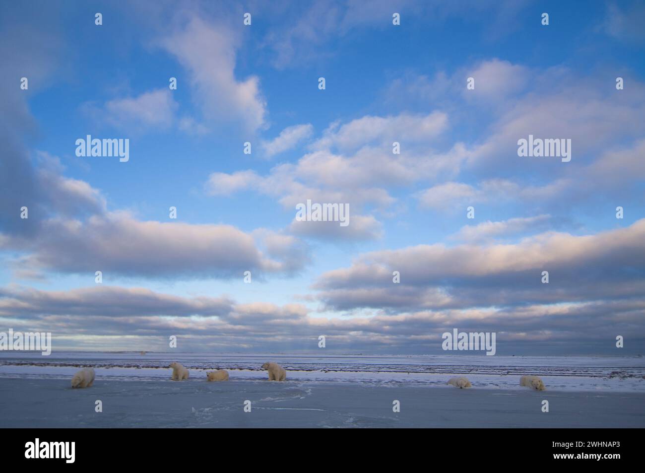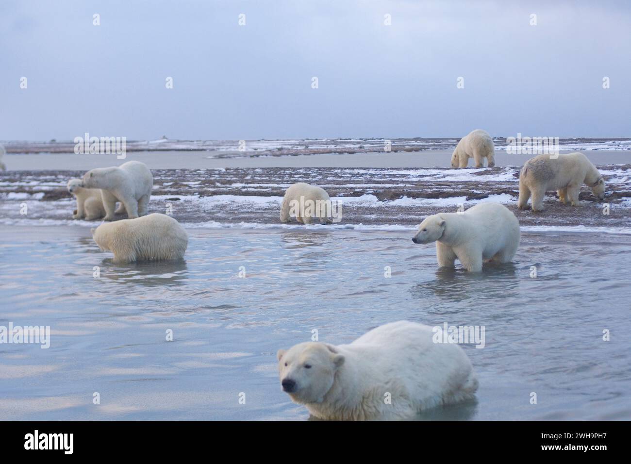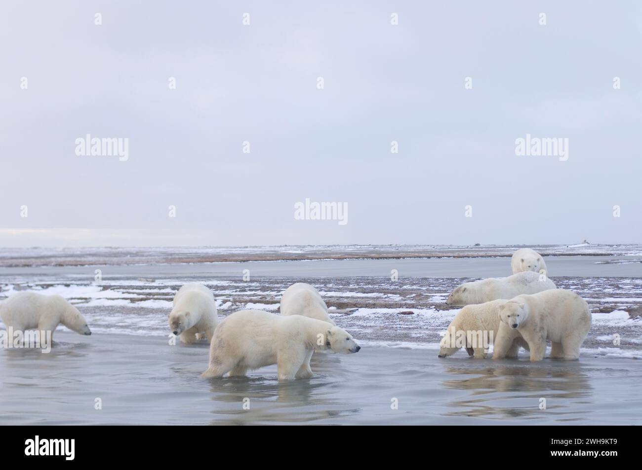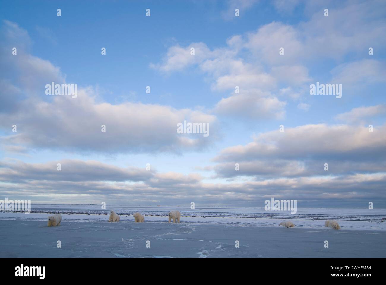 polar bears Ursus maritimus sows cubs boars along a barrier island