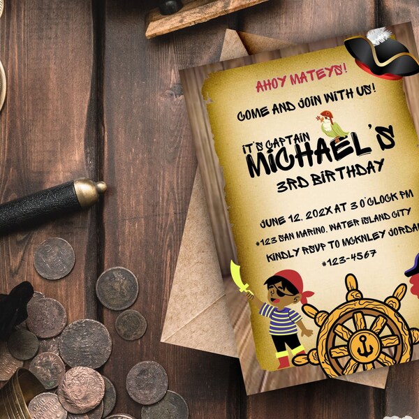 Edit this Hand drawn Mariner Sailor Boat Party Invitation design online