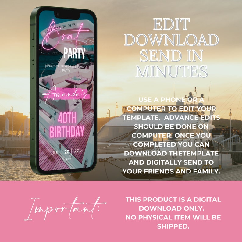 Digital Boat Party Invitation Animated Yacht Party Invite Pink Cruise