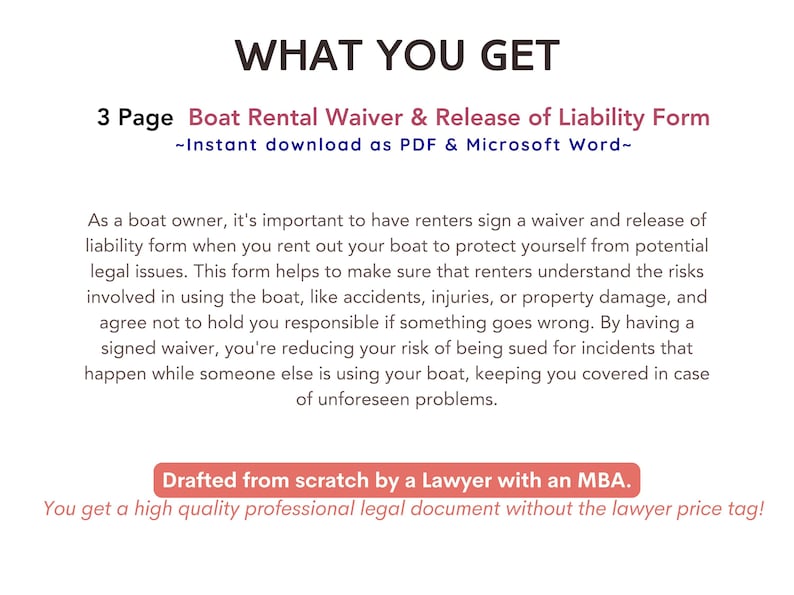 Boat Rental Waiver Form Boating Release of Liability Boat Owner Hold