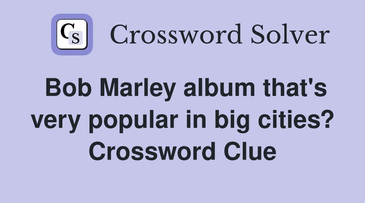 Bob Marley album that #39 s very popular in big cities? Crossword Clue