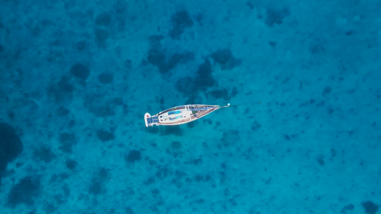 Premium stock video Yacht swaying and bobbing in the ocean revealing