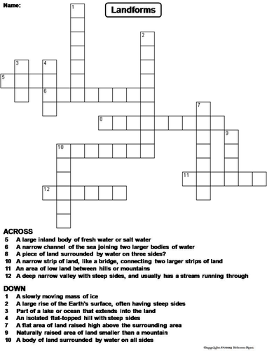 Types of Landforms and Bodies of Water Crossword Puzzle Teaching