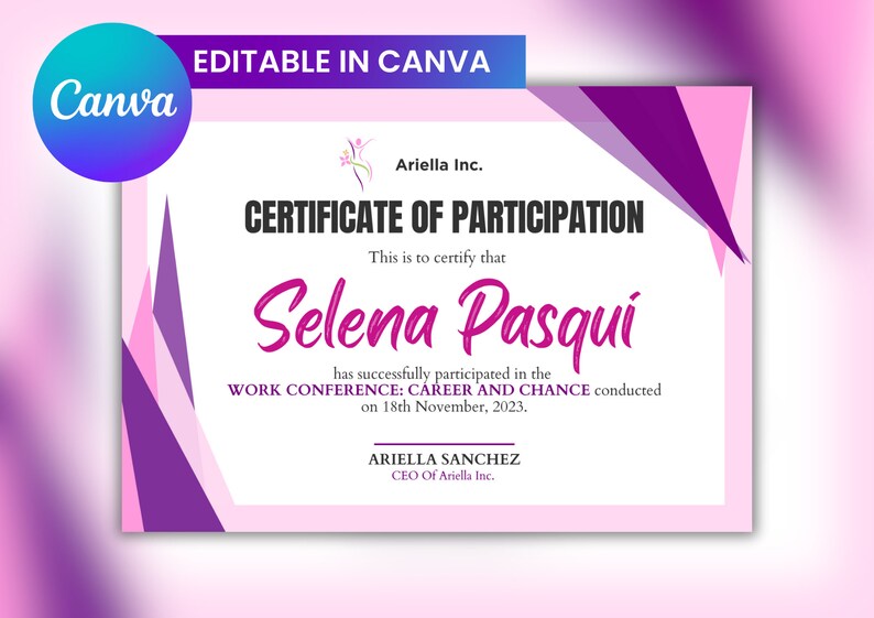 Canva Certificate of Recognition Template Lash Class Certificate Body