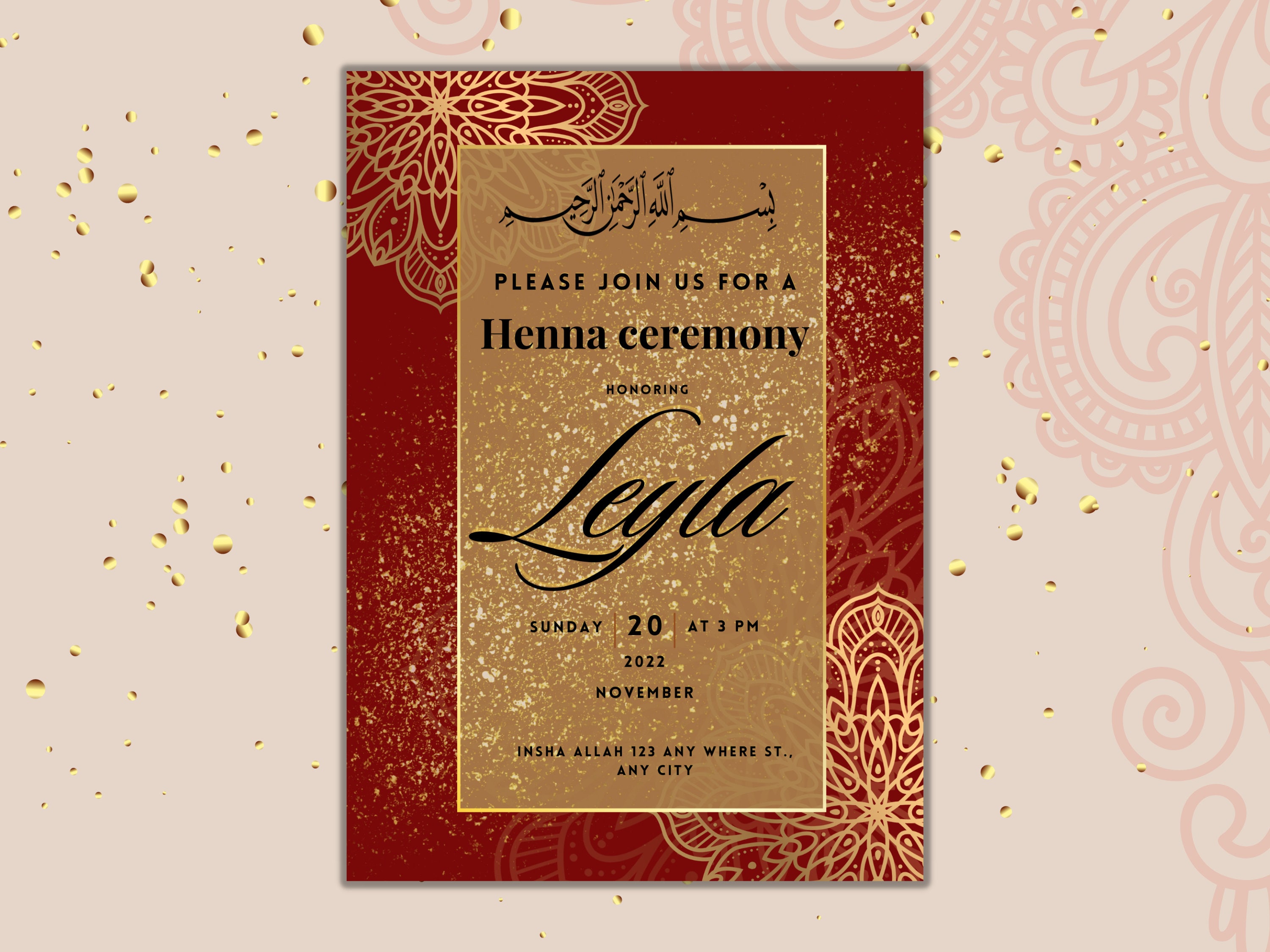 Tarjeta henna day Fiesta de henna Tarjeta Tarjetas de invitación