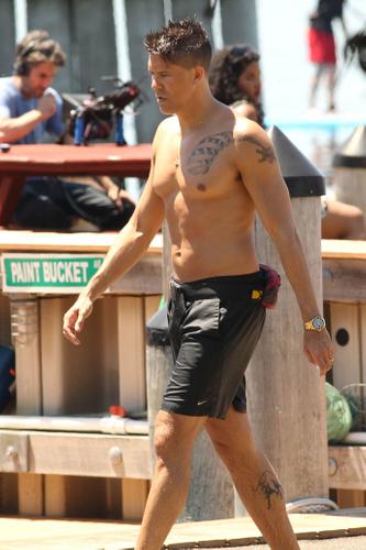 Shirtless Ryan Phillippe shows off his six pack and tattoos in Cabo