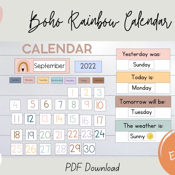 Boho rainbow classroom calendar and weather display editable Artofit