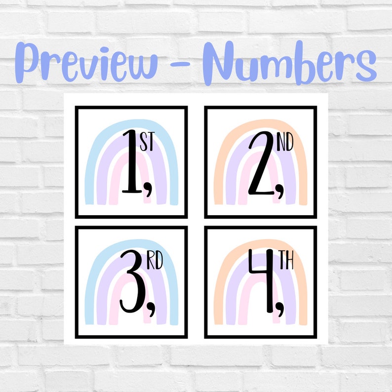 Décor Classe Rainbow Boho Calendrier Nombres Affiches modifiable