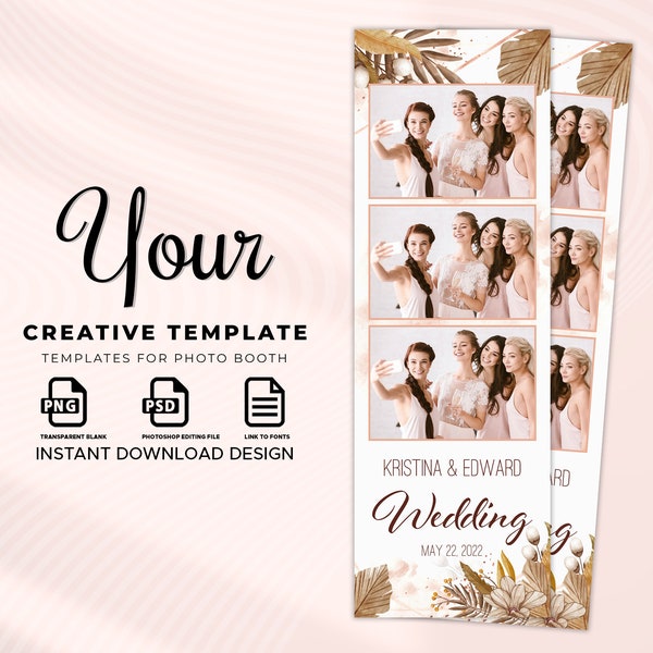 Simple Boho Wedding Photo Booth Template Strip 2x6 (editable) Etsy