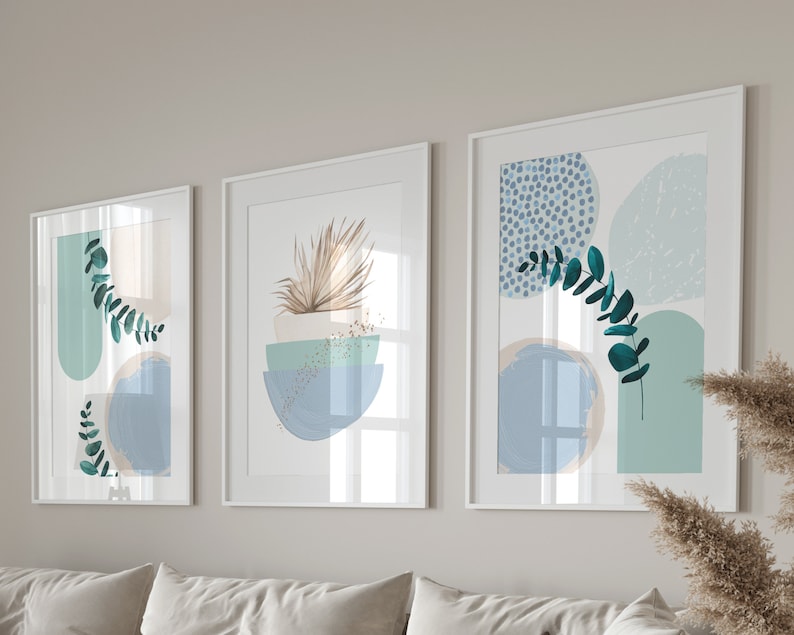 Boho Printable Wall Art Modern Nordic Blue Green Set of 3 Etsy