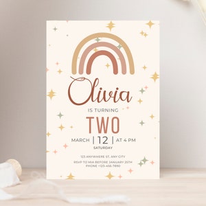 Editable ANY AGE Boho Rainbow Birthday Invitation Girl Hippie Earthy
