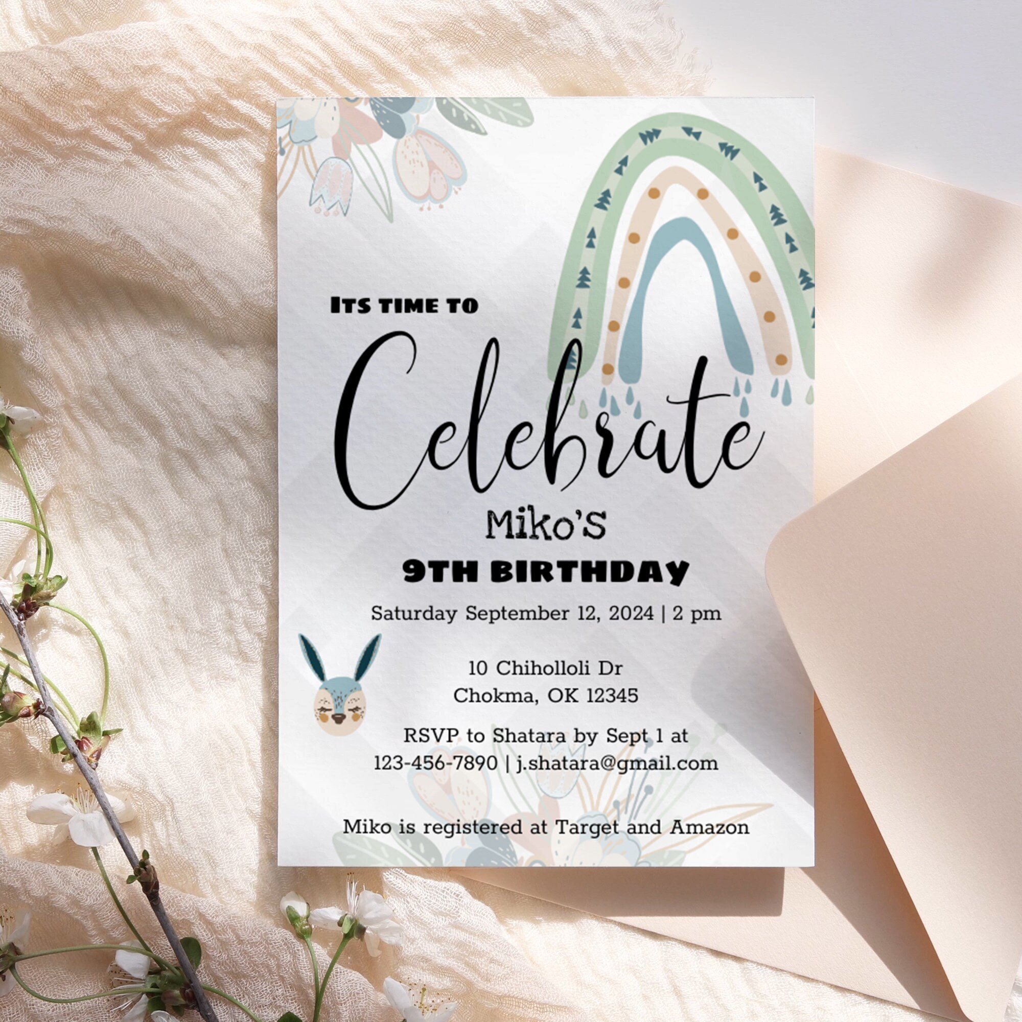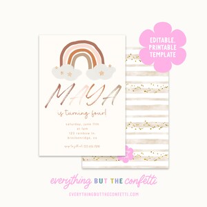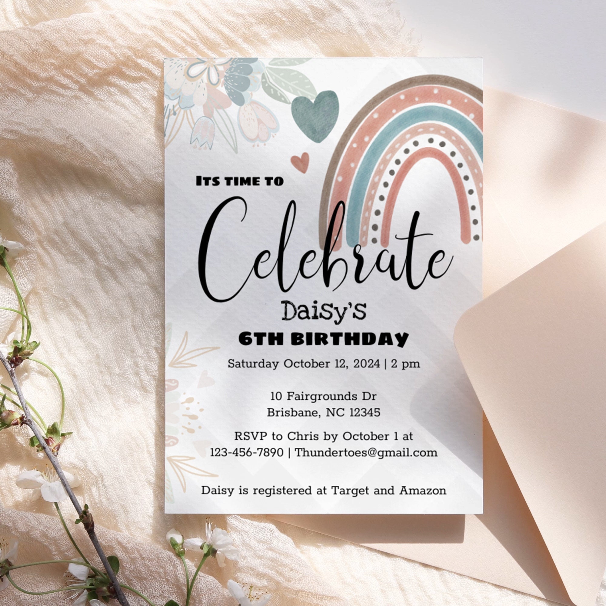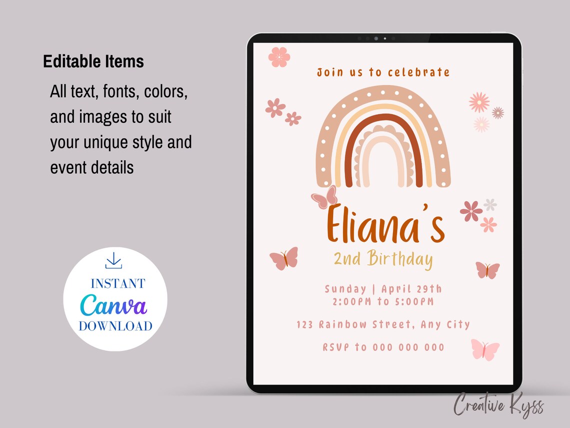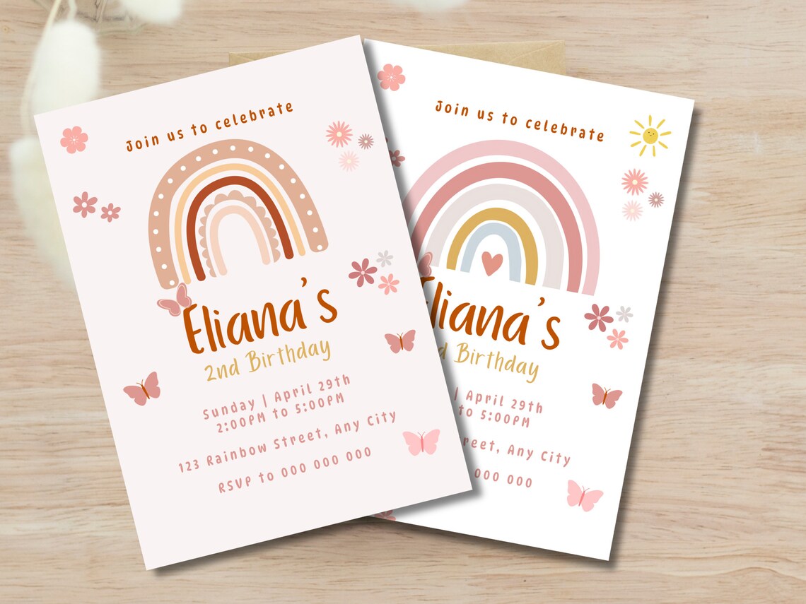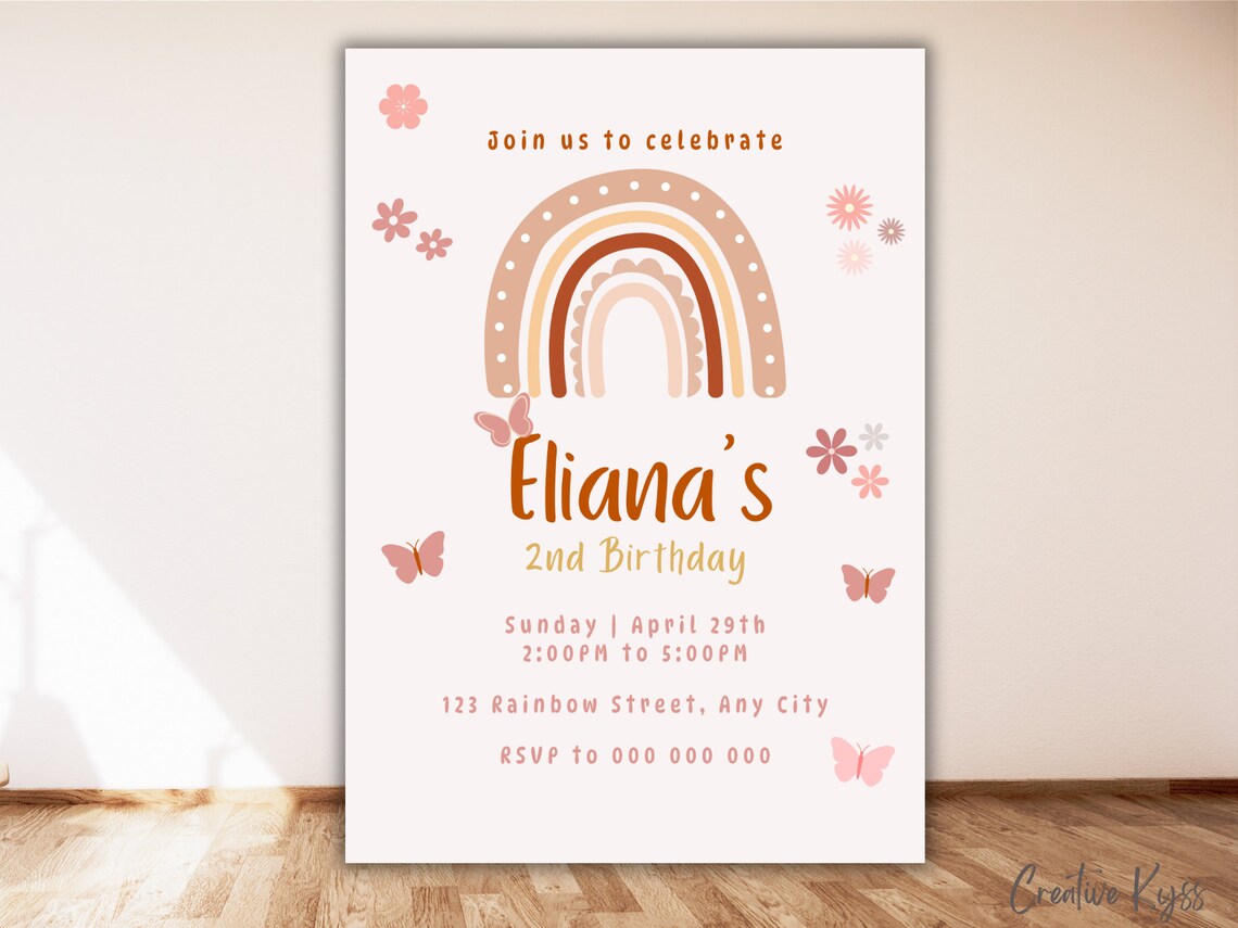 Editable Boho Rainbow Invitation Birthday Party Digital Download
