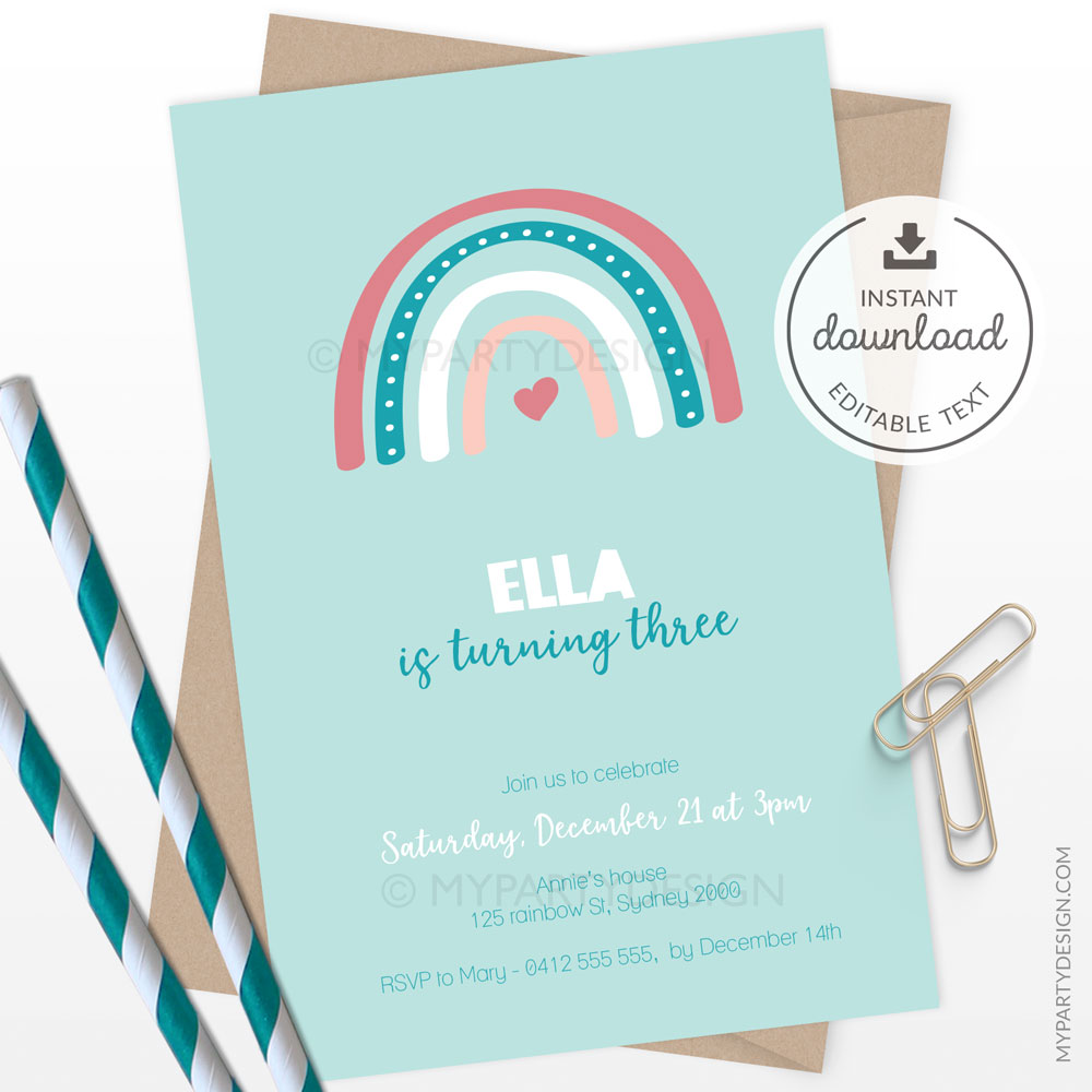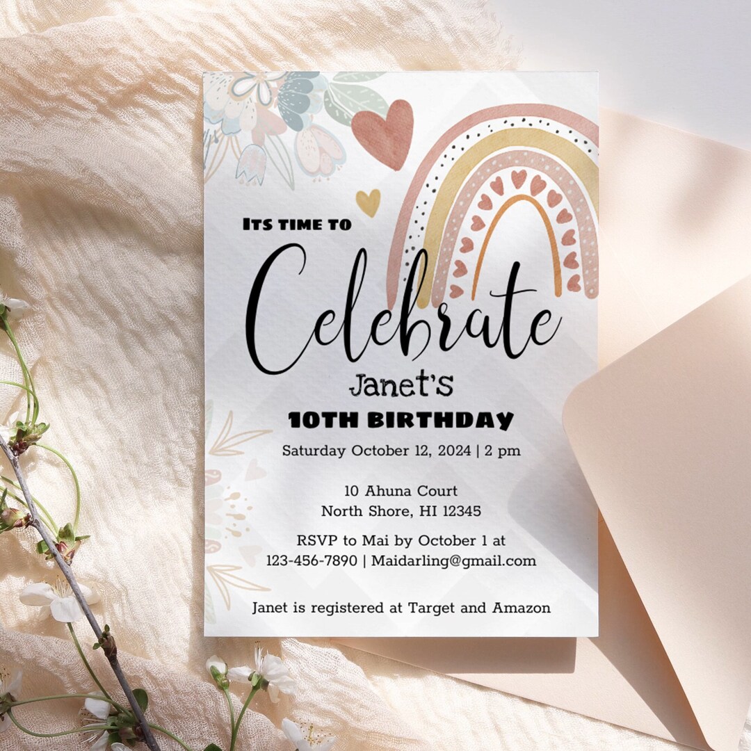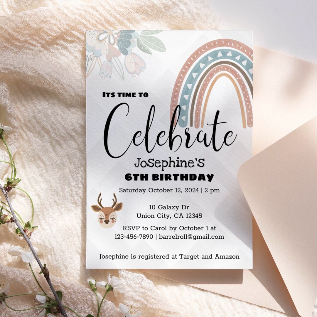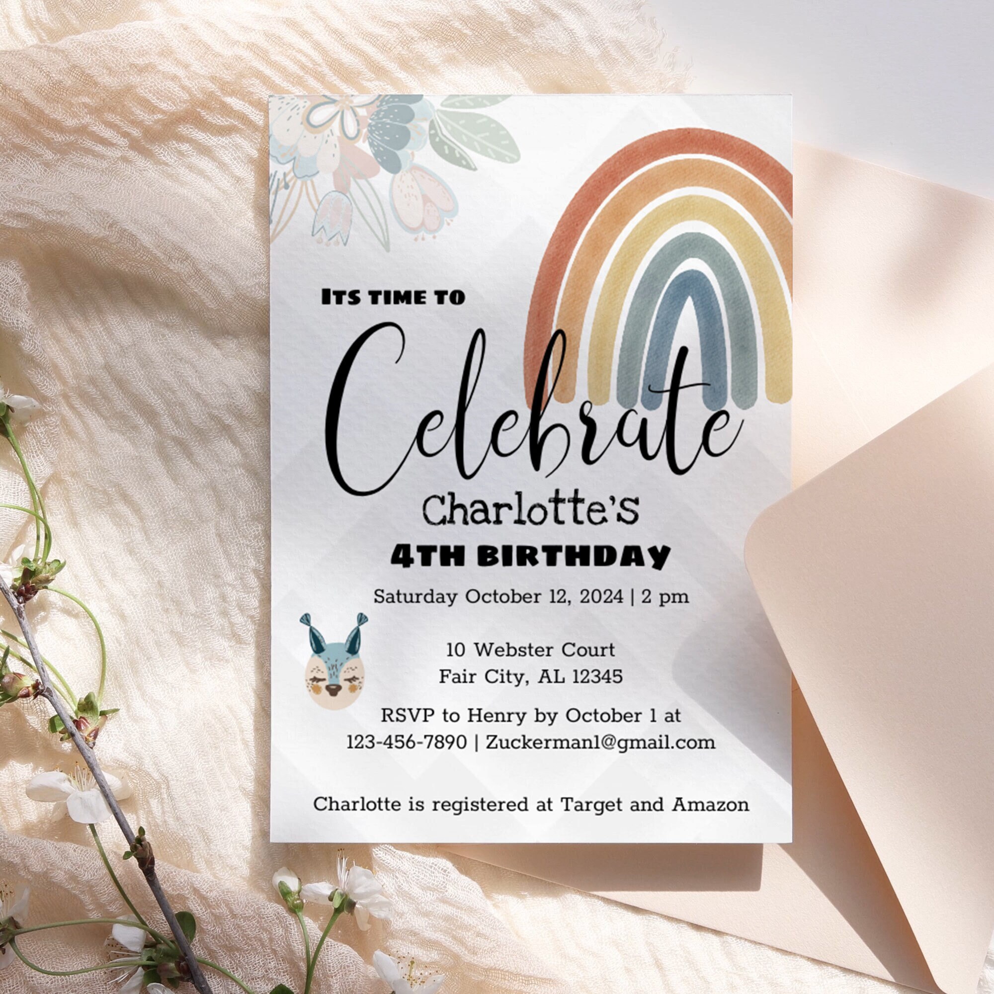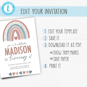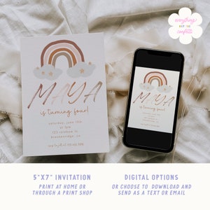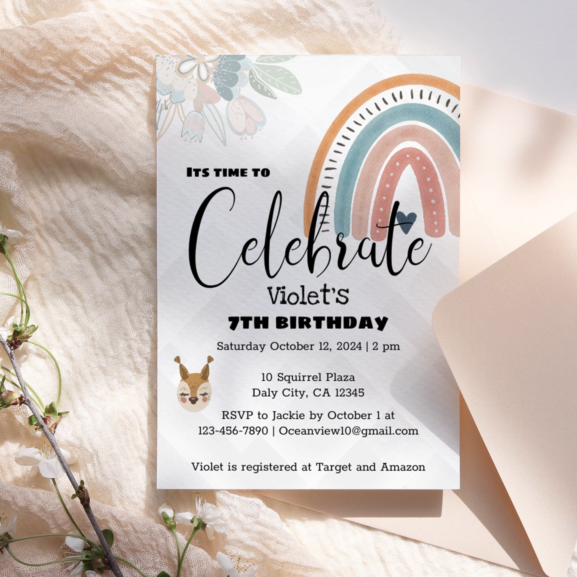 Editable Boho Rainbow Invitation Birthday Party Digital Download
