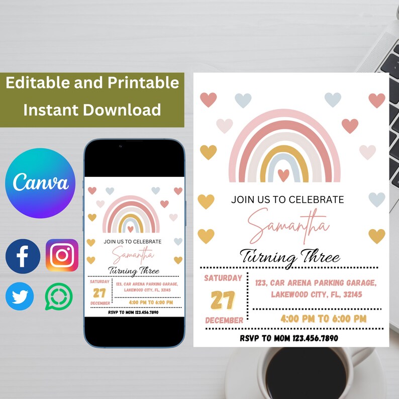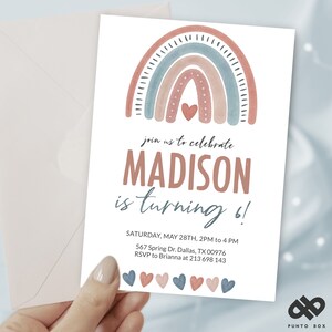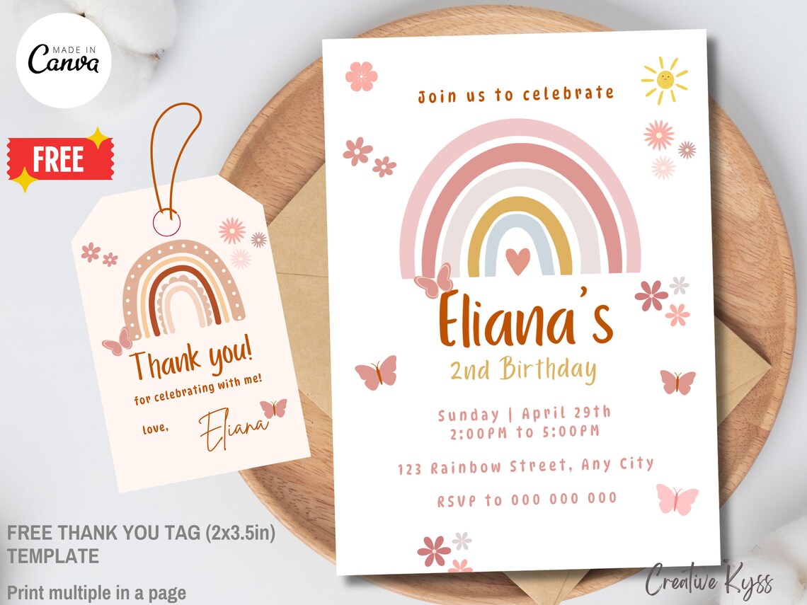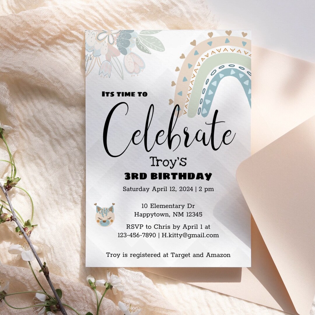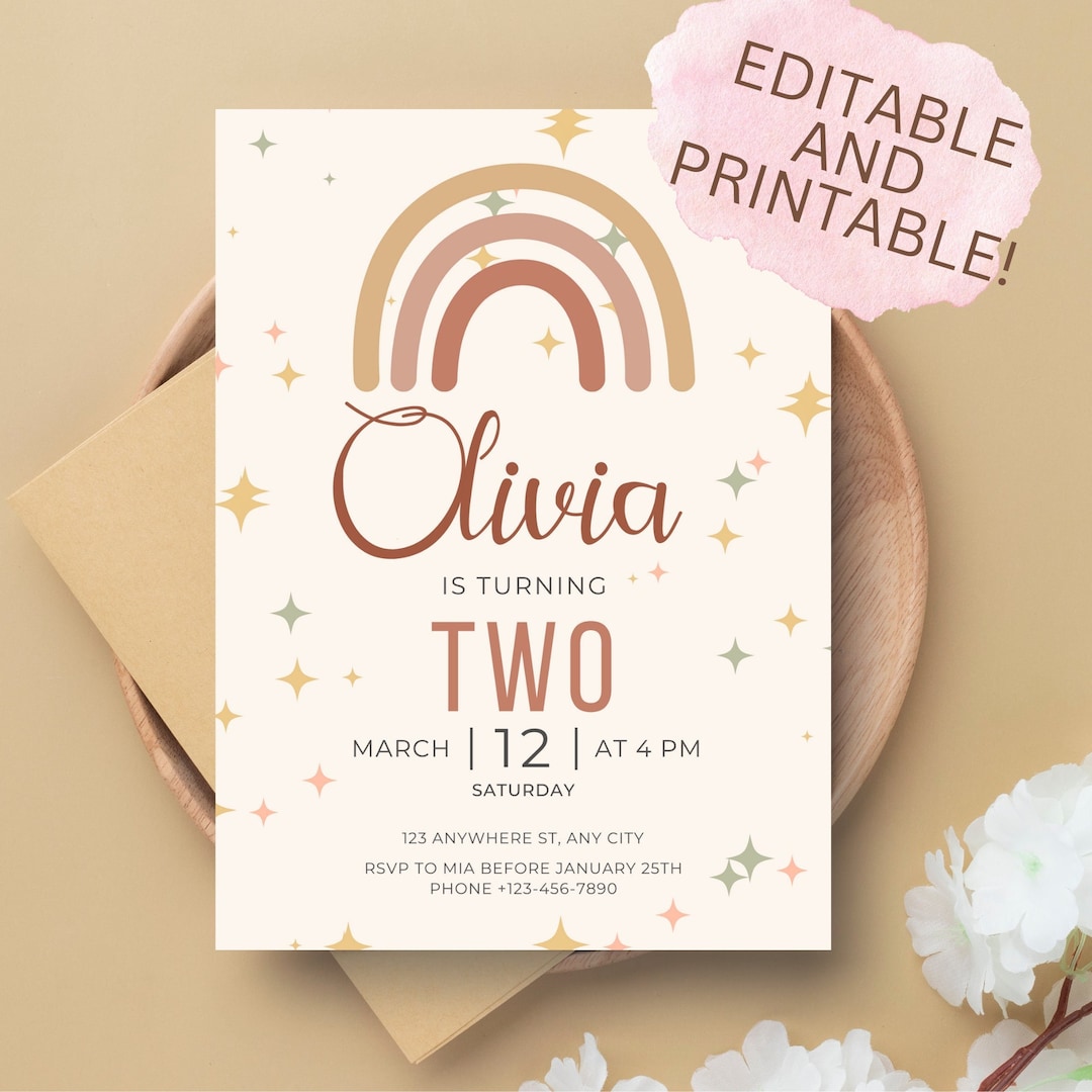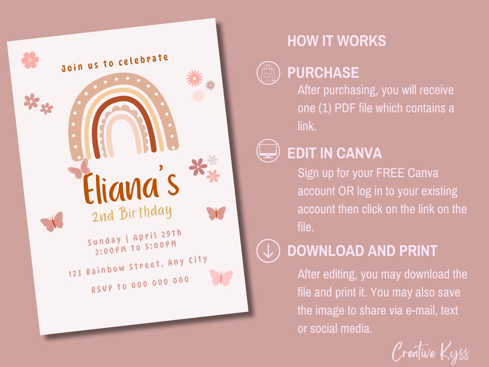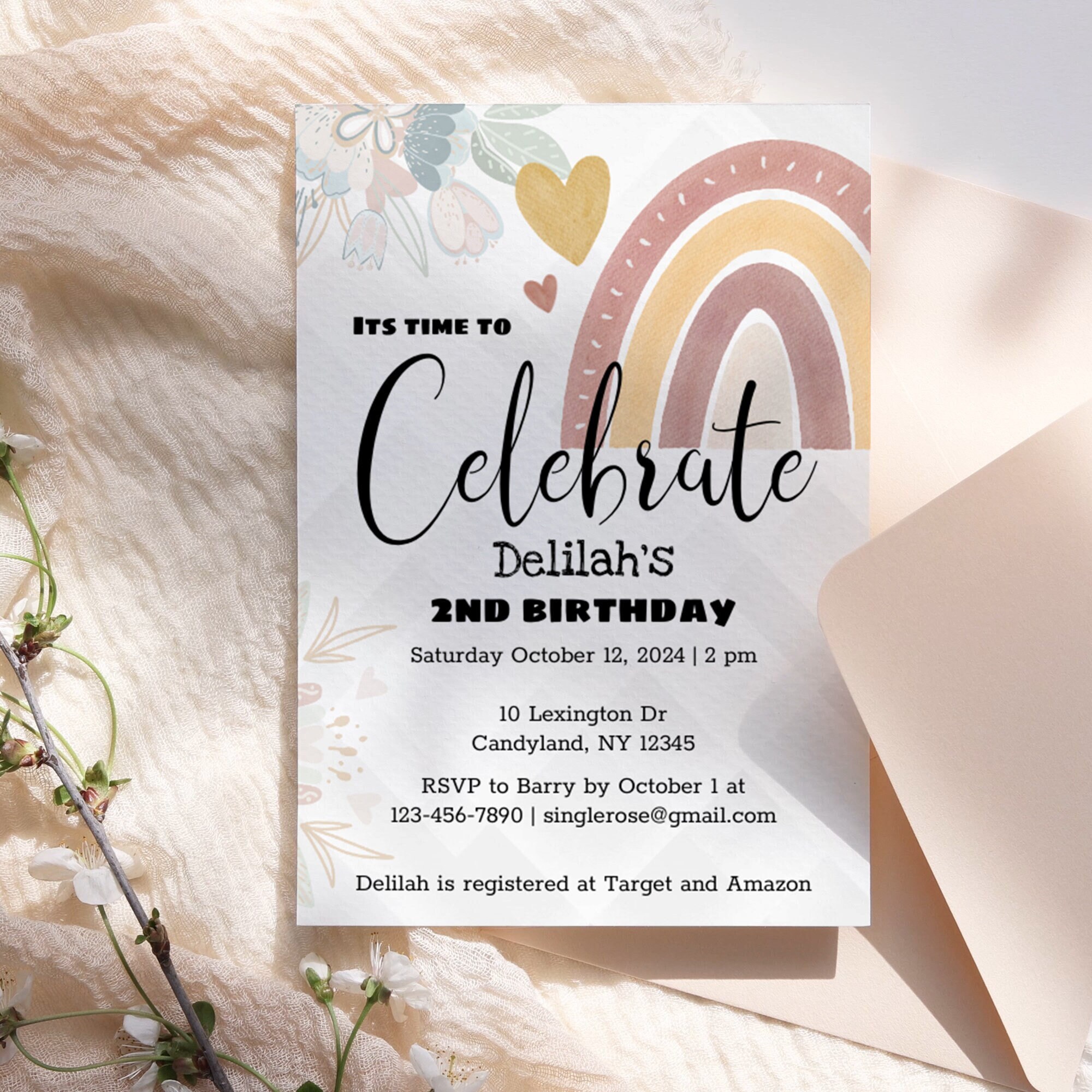 Editable Boho Rainbow Invitation Birthday Party Digital Download