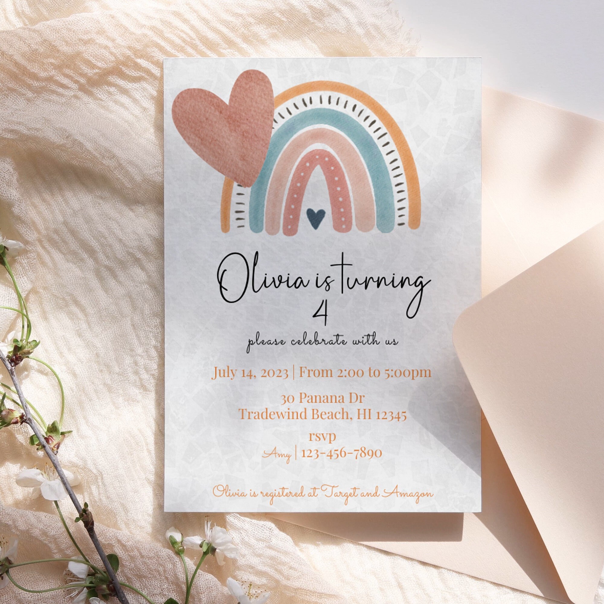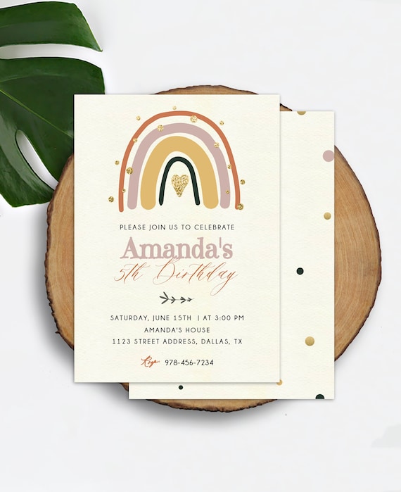 Boho Rainbow Birthday Invitation Template Party Invitation Etsy