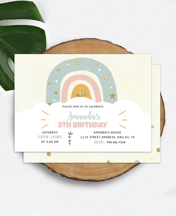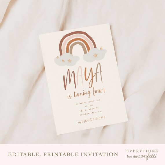Boho Rainbow Birthday Invitation Printable Template Editable Etsy