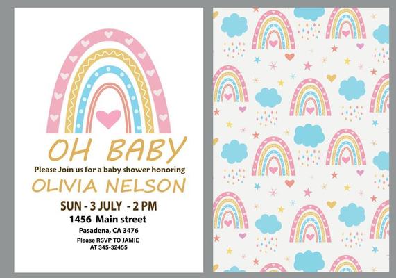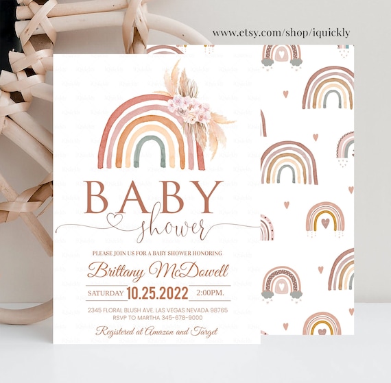 Boho Rainbow Baby Shower Invitation Template Paper Party Supplies