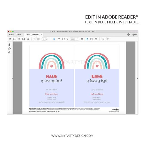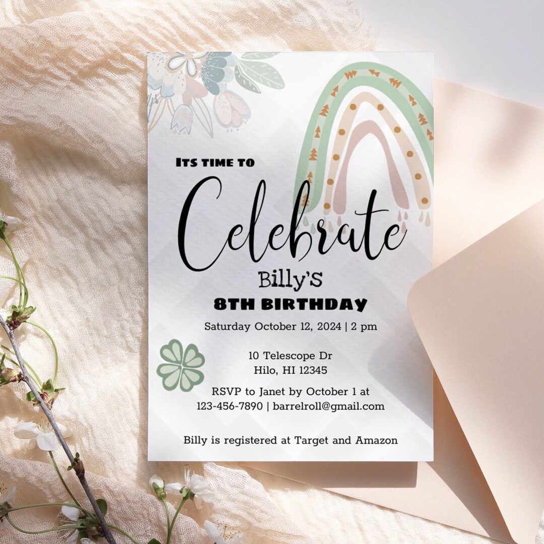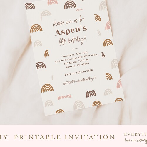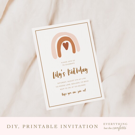 Boho rainbow Invitation Customizable Template DIY Bobotemp