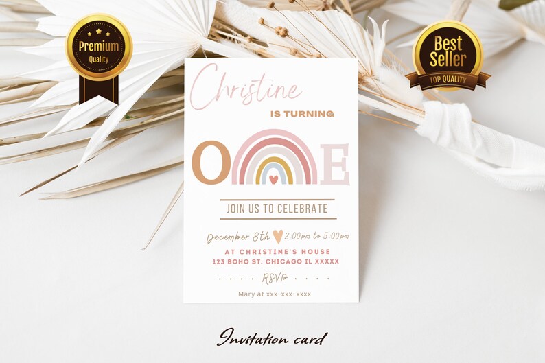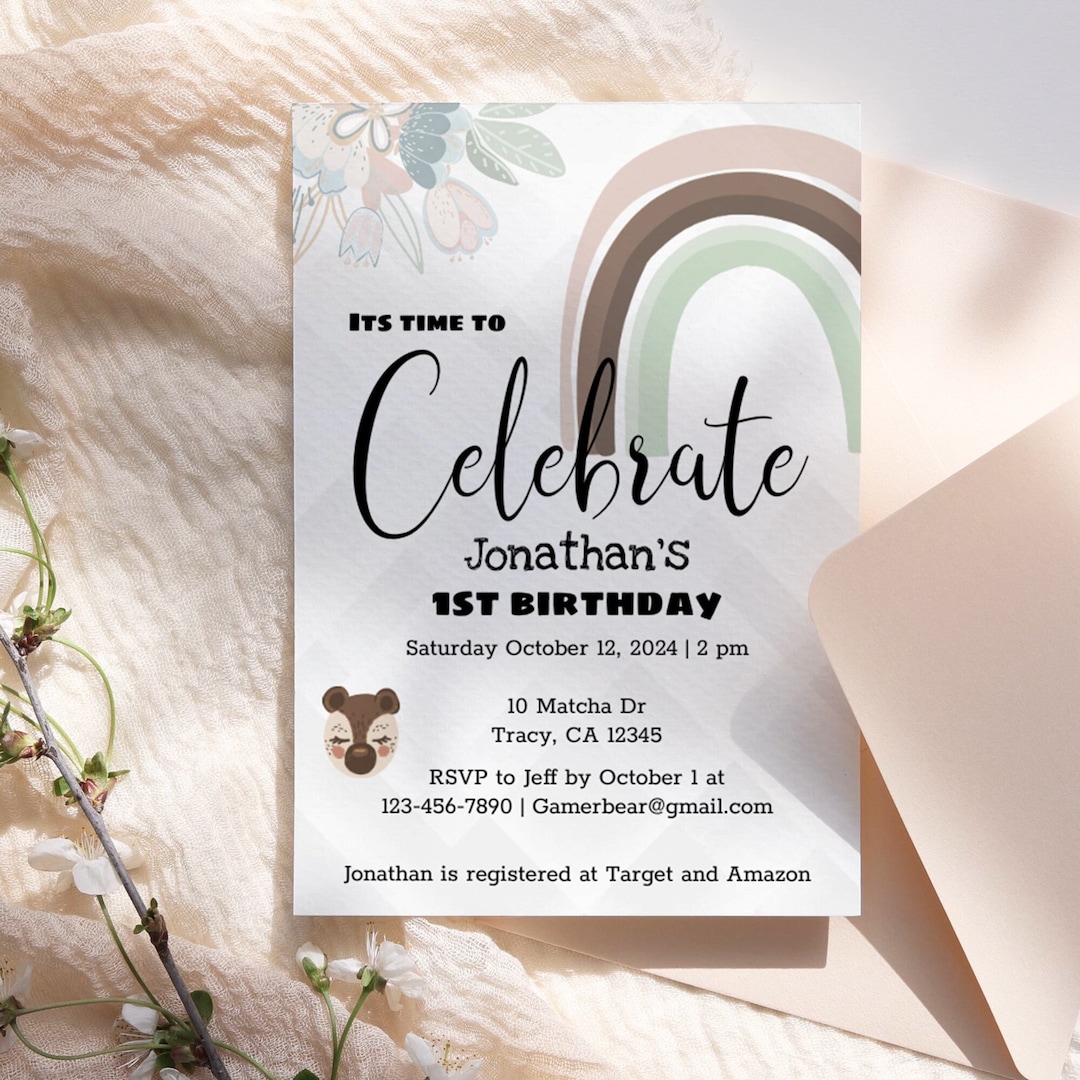 Editable Rainbow First Birthday Invitation Boho Rainbow 1st Etsy