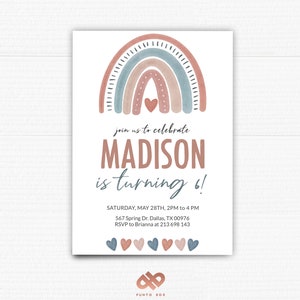 Muted Rainbow Invitation Boho Rainbow Birthday Invite Pastel Rainbow