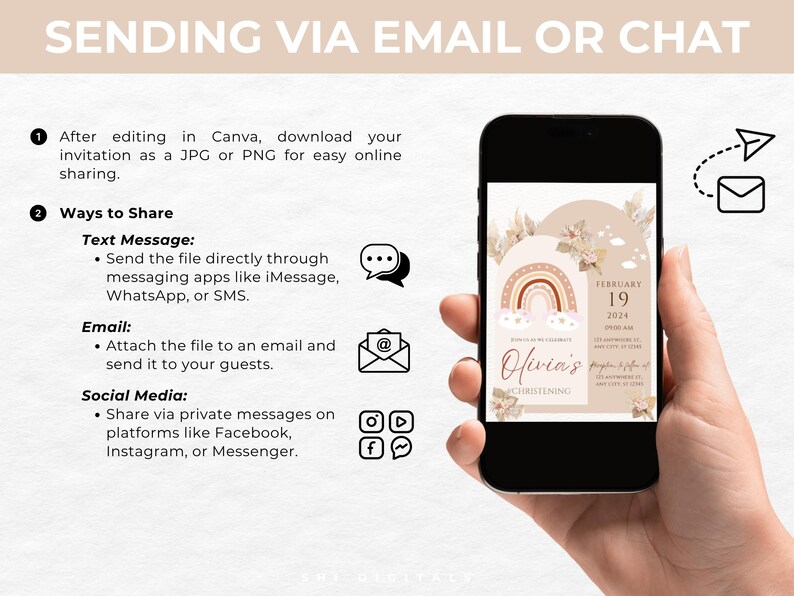 Editable Rainbow Birthday Invitation Modern Boho Rainbow 1st Bday