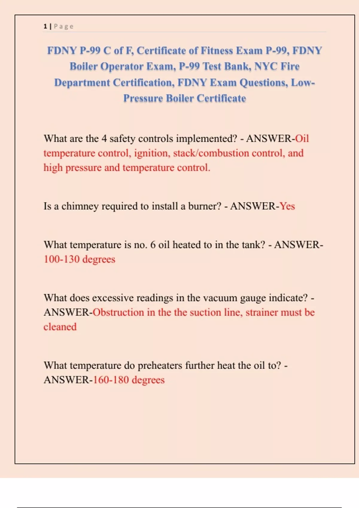 FDNY P 99 C of F Certificate of Fitness Exam P 99 FDNY Boiler