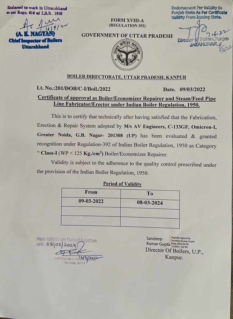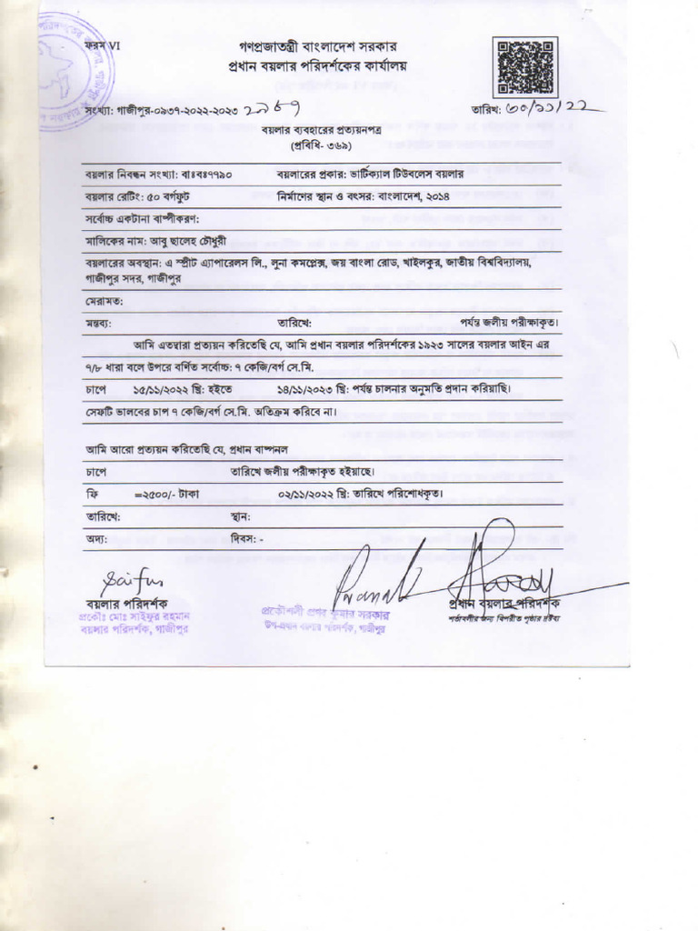 Boiler Certificate Of Operation