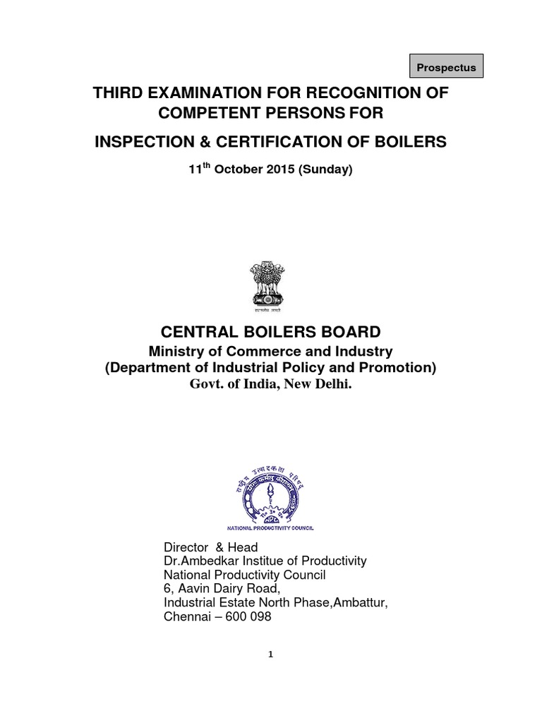 Competent Persons for Inspection Certification of Boilers Boiler