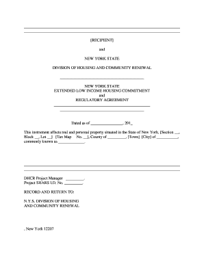 Fillable Online nyshcr DHCR Boilerplate SLIHC Regulatory Agreement