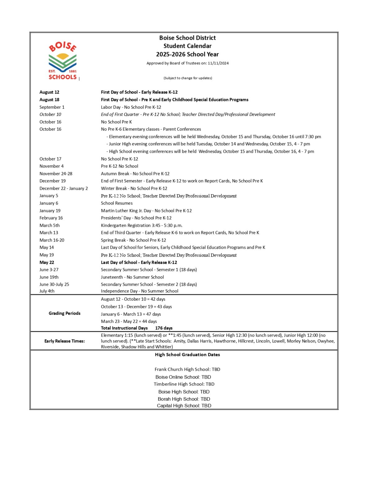 Boise School District Calendar ID Revised pdf 25 26 EduCounty